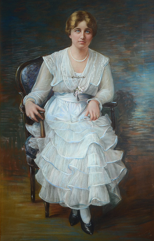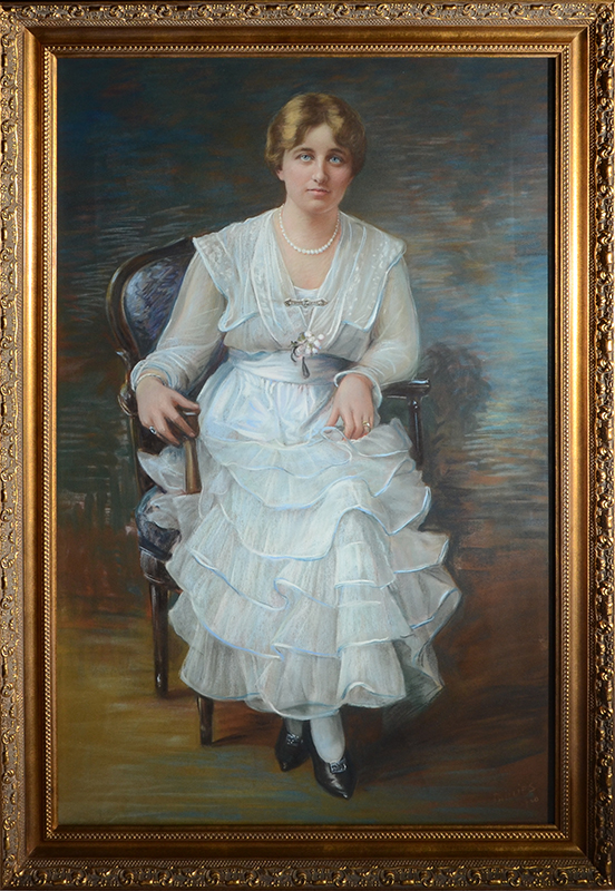 LARGE PASTEL PORTRAIT OF A YOUNG BEAUTY IN WHITE: Signed Phillips lower right and dated 1920, sight size 39.5 x 25, newer frame 45.5 x 31.