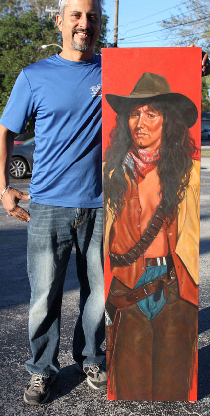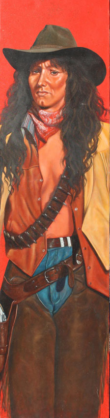 BEACH-STAMPER, Diana, (American, 20/21st C.): Seductive Cowgirl, Oil/Canvas, 60'' x 16'', signed lower right, unframed.
