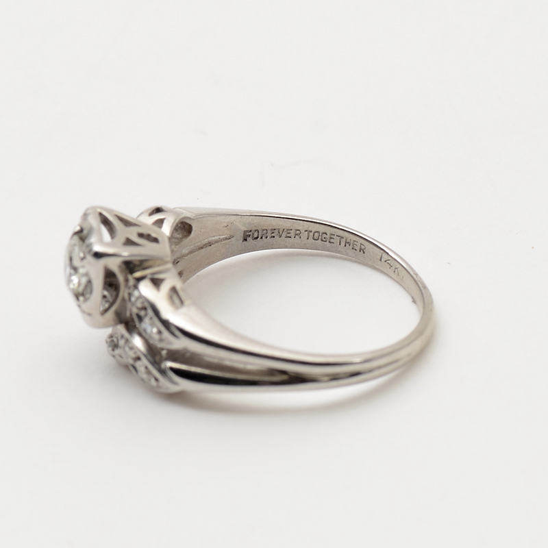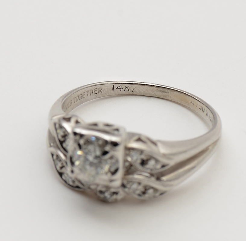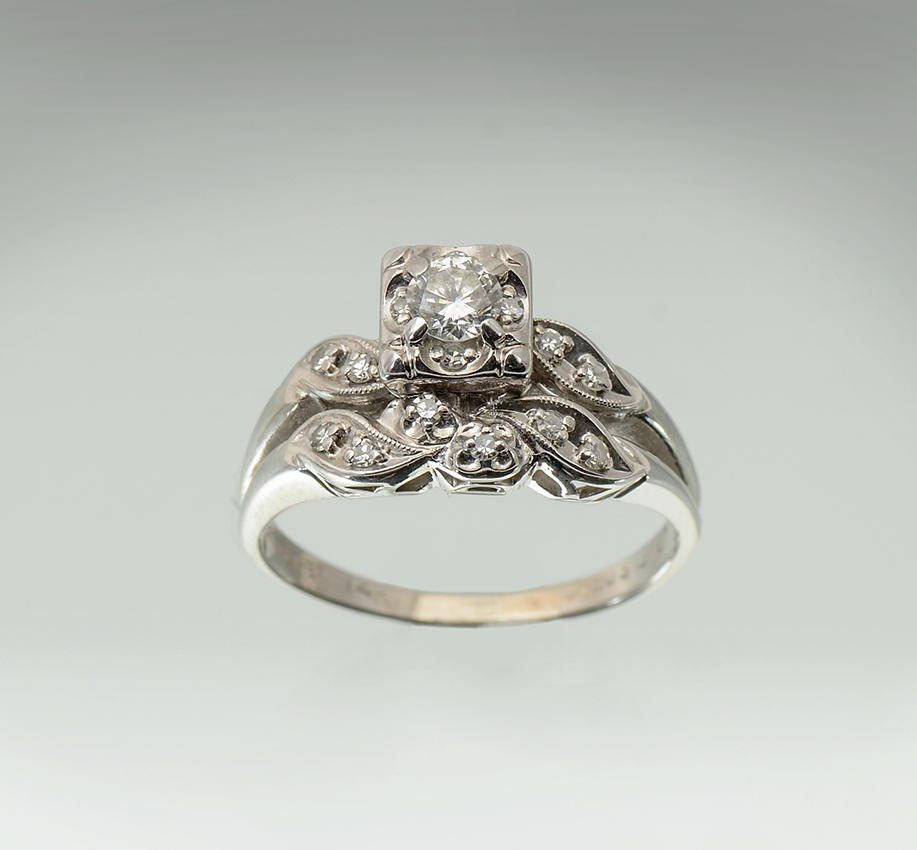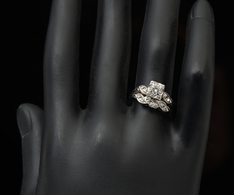 14K RETRO WEDDING SET: .69CTW in diamonds are set into this 14K white gold wedding set. Size 7. Total weight 4.1 grams.