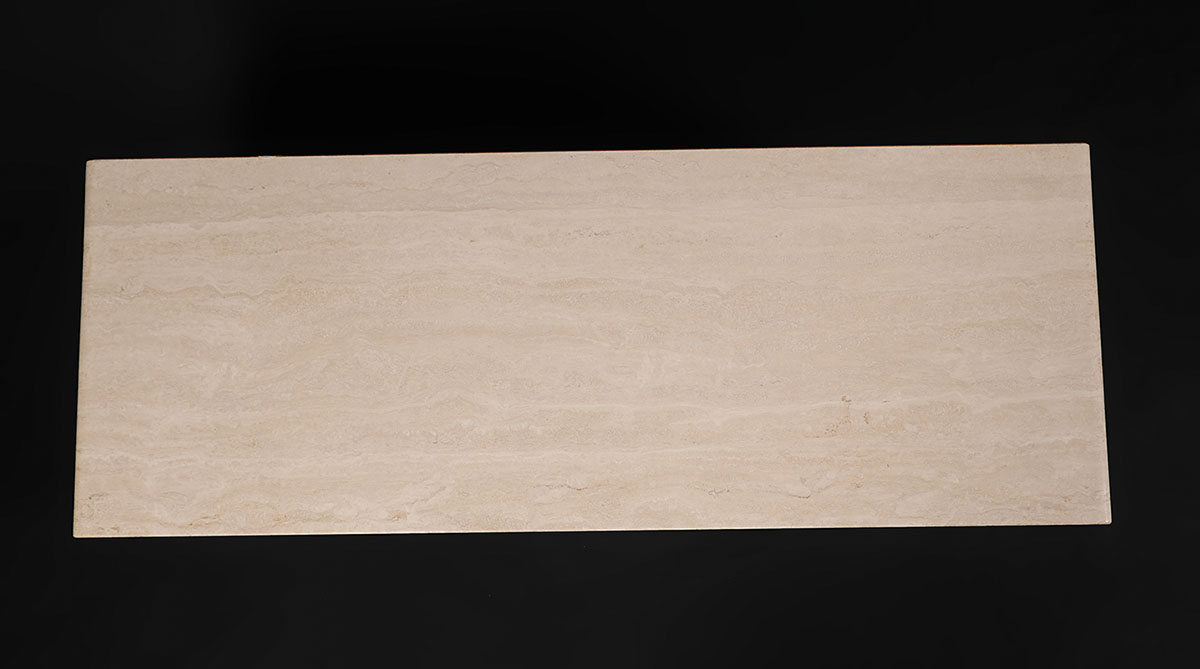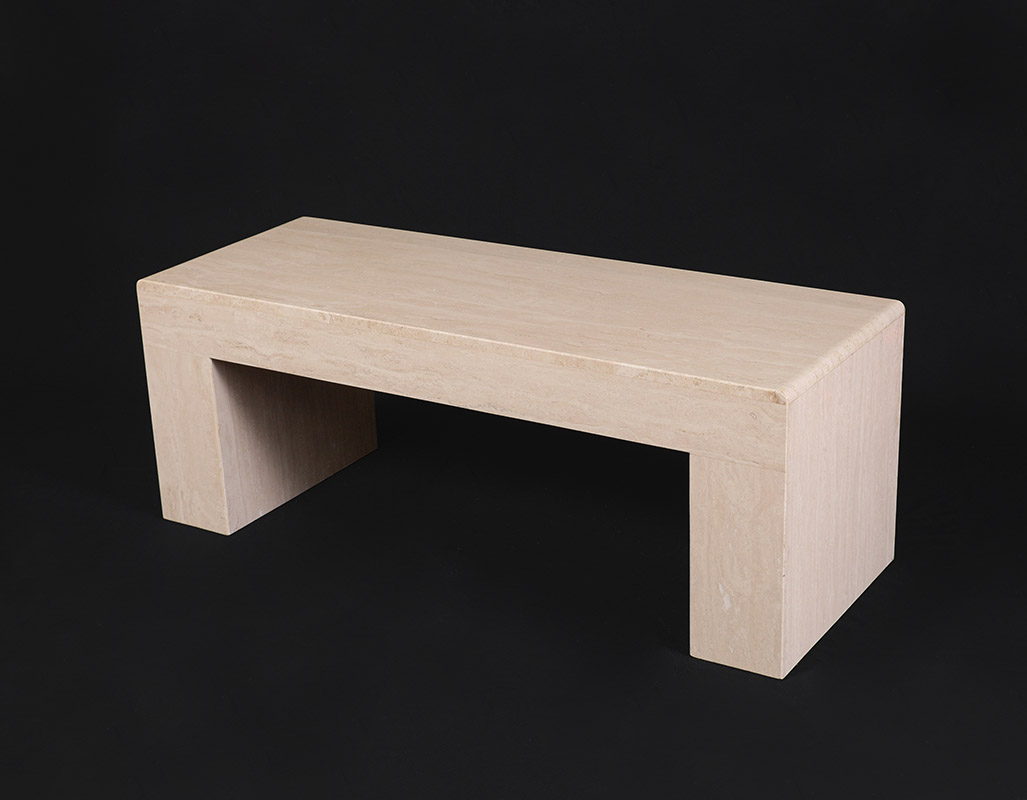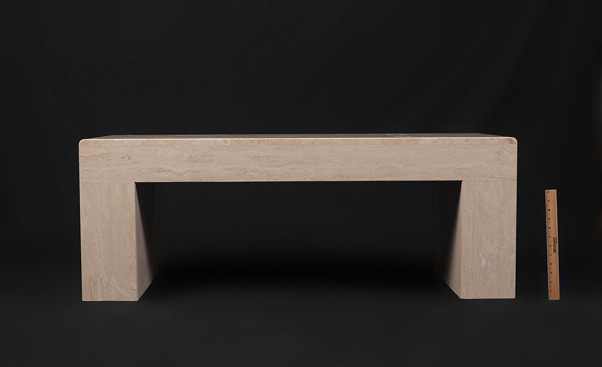 HEAVY STONE DOUBLE PEDESTAL BENCH: Contemporary stone bench with square pedestal base at each end. Could also be used as a coffee table if desired. Measures 18'' h. x 48'' x 18''.