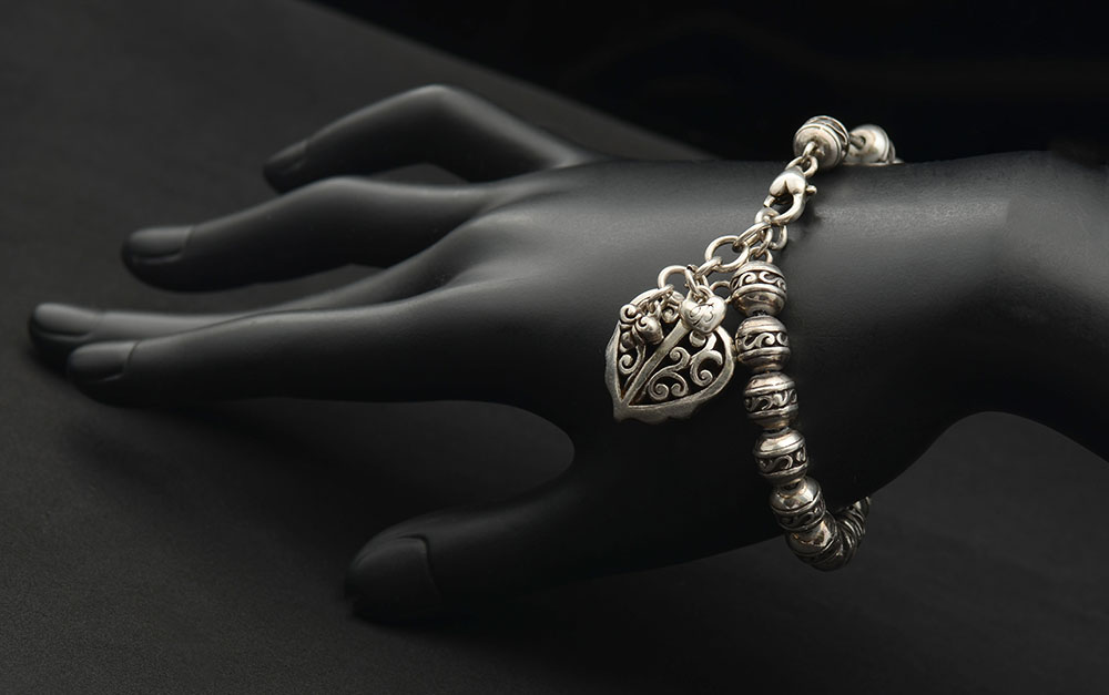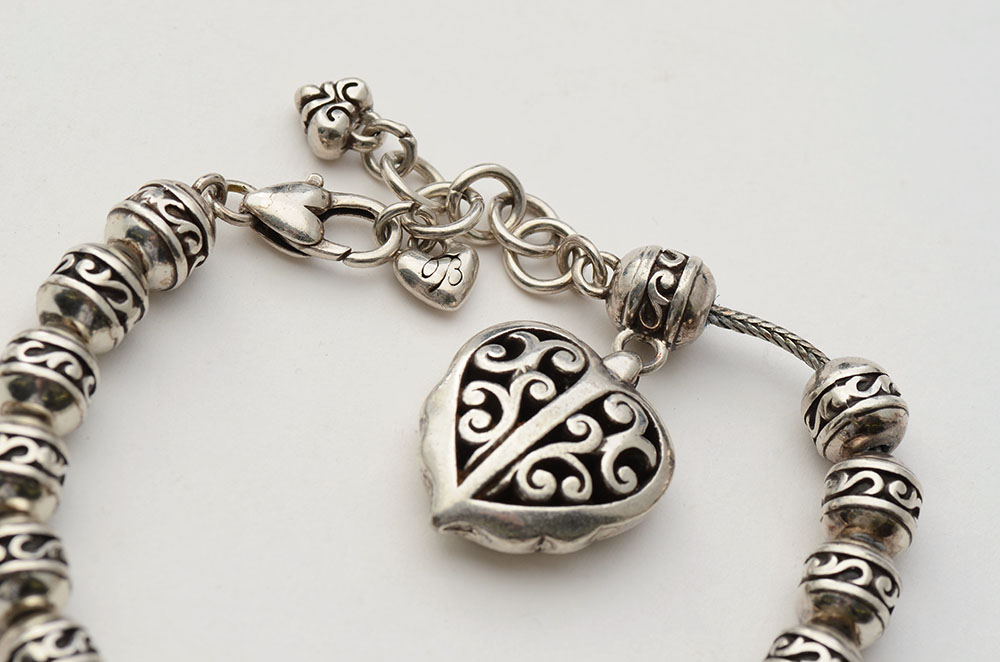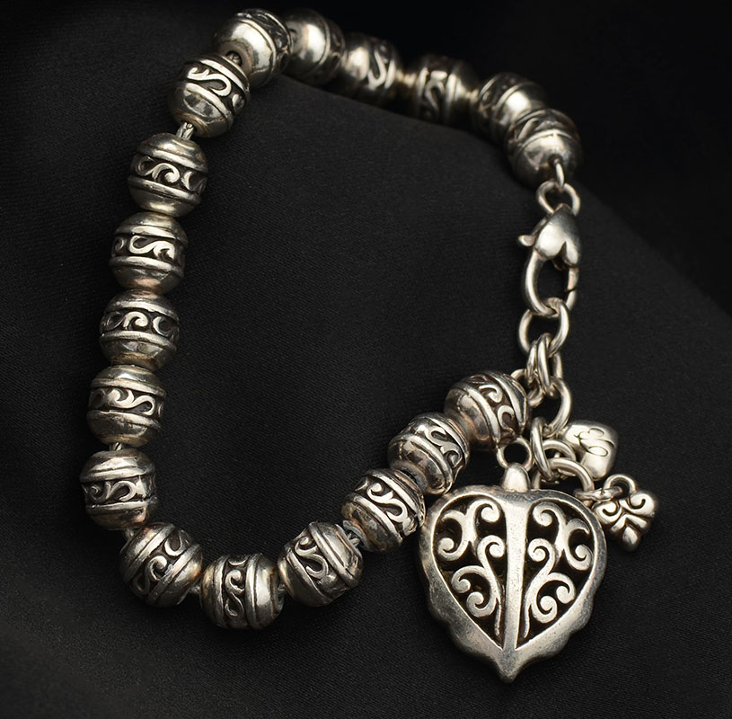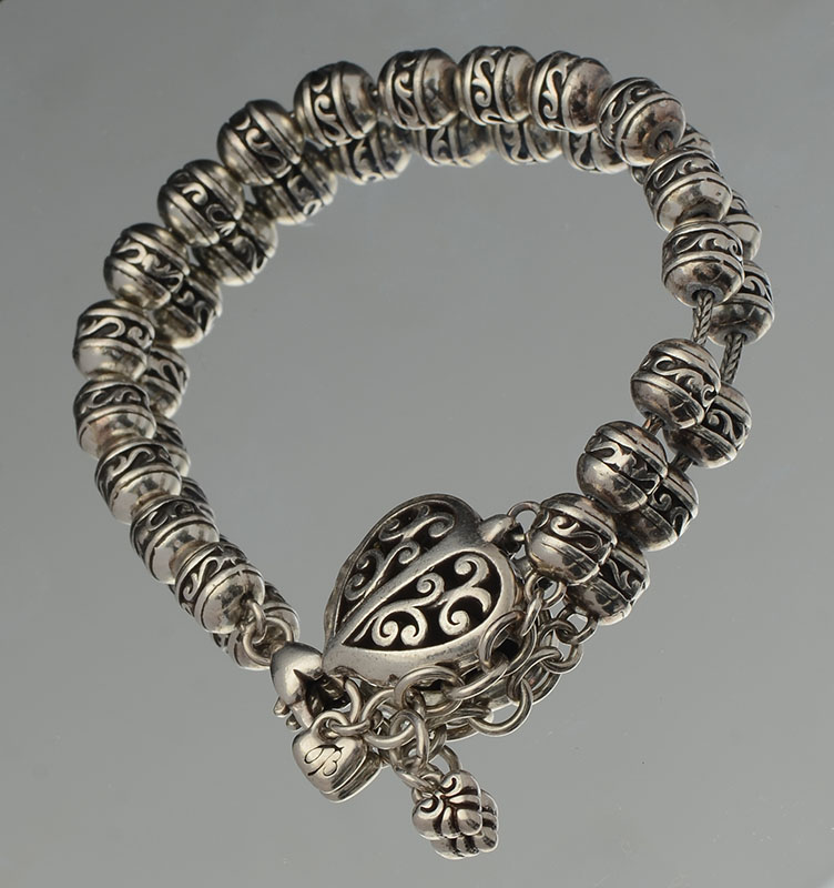STERLING SILVER DESIGNER BRACELET ''HEARTS R WILD'': 7'' adjustable bracelet has a lobster heart clasp and charm. Weight 51.grams.