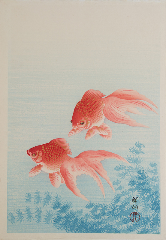 OHARA KOSON, 2 GOLDFISH WOODBLOCK: 15.5'' x 10.5'', unframed.