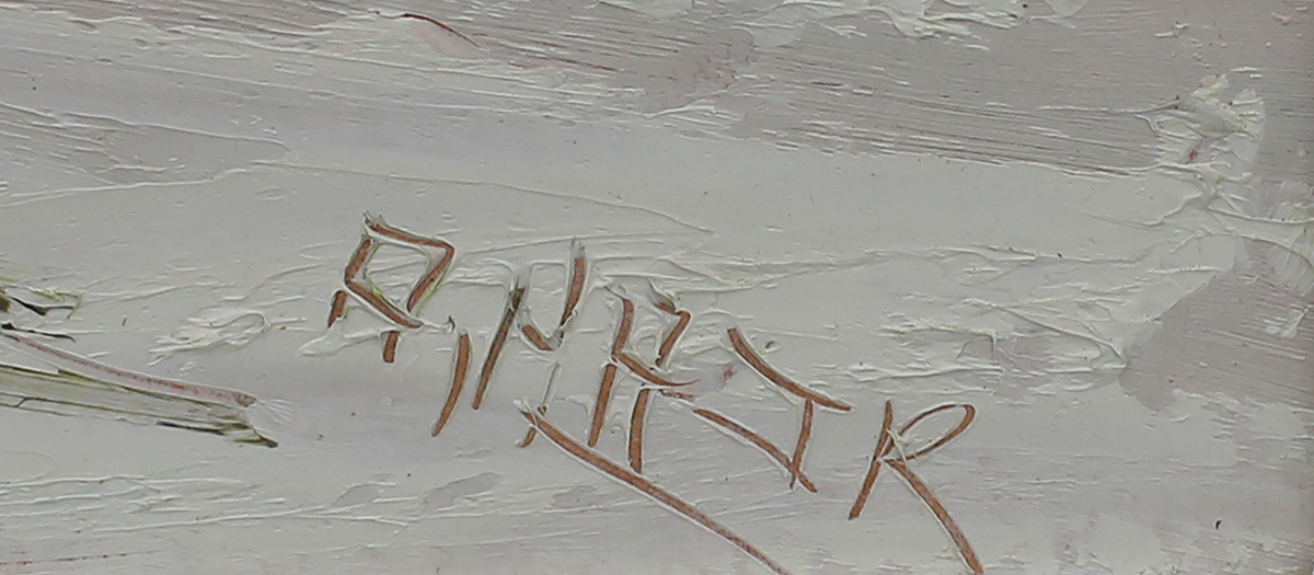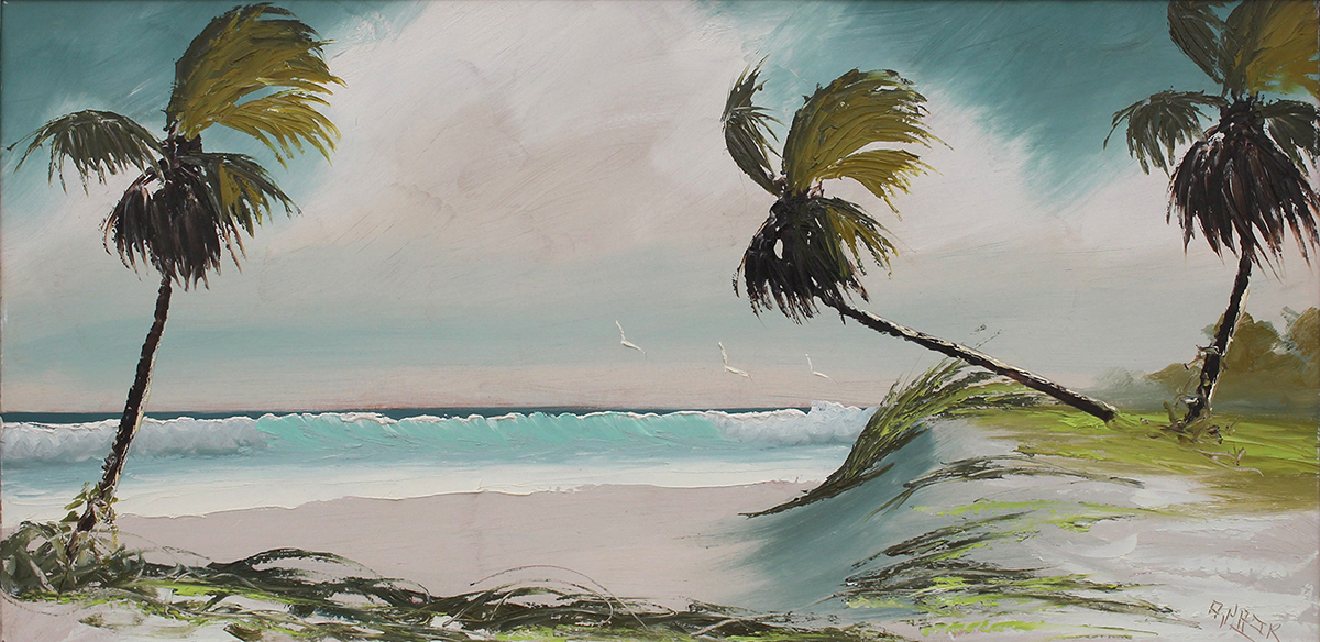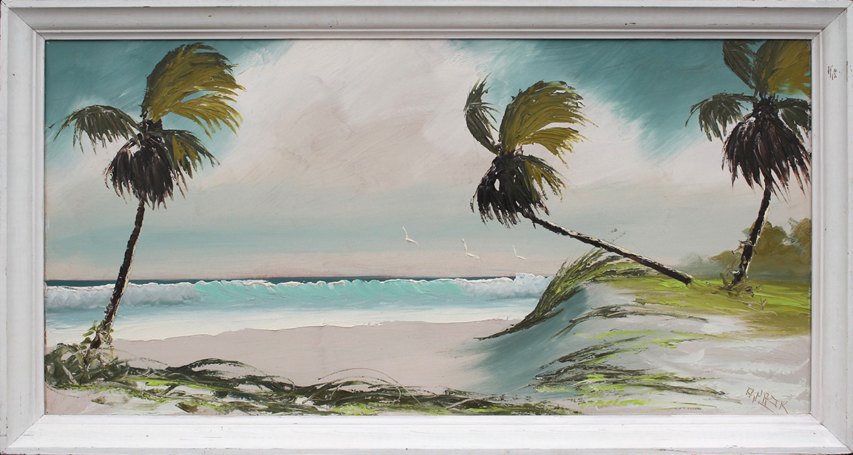 HAIR, Alfred, (American, 1941-1970): Florida Highwaymen coastal scene with palm trees, Oil/Upson, signed lower right, 24'' x 48'', framed 27 1/2'' x 57 1/2''.