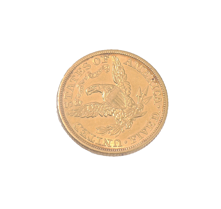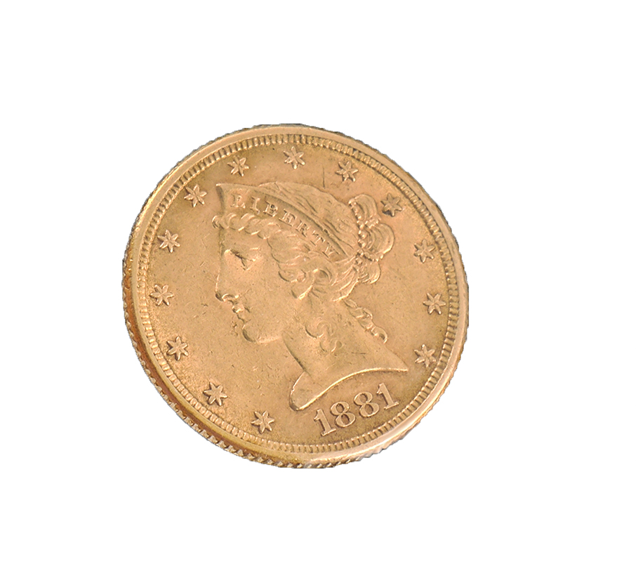 1881 US $5 LIBERTY HEAD GOLD COIN: Ungraded, 8.36 grams, .900 gold.