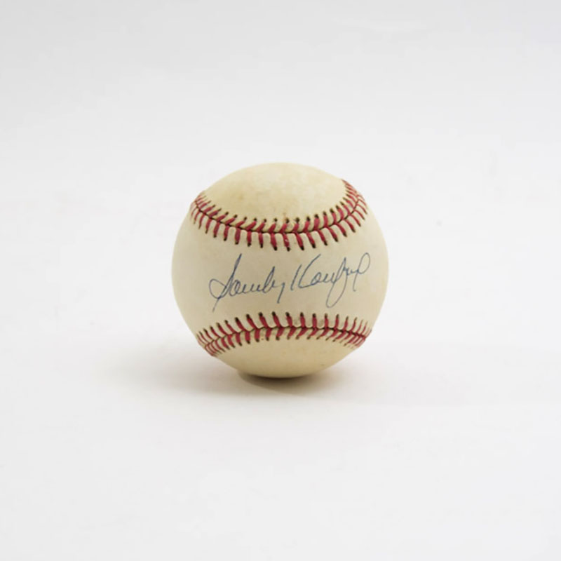 SANDY KOUFAX SIGNED BASEBALL: Autographed in pen on Rawlings National League ball. Sold with plastic cover and stand. No COA.