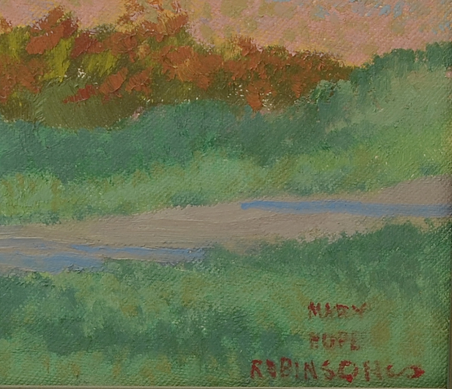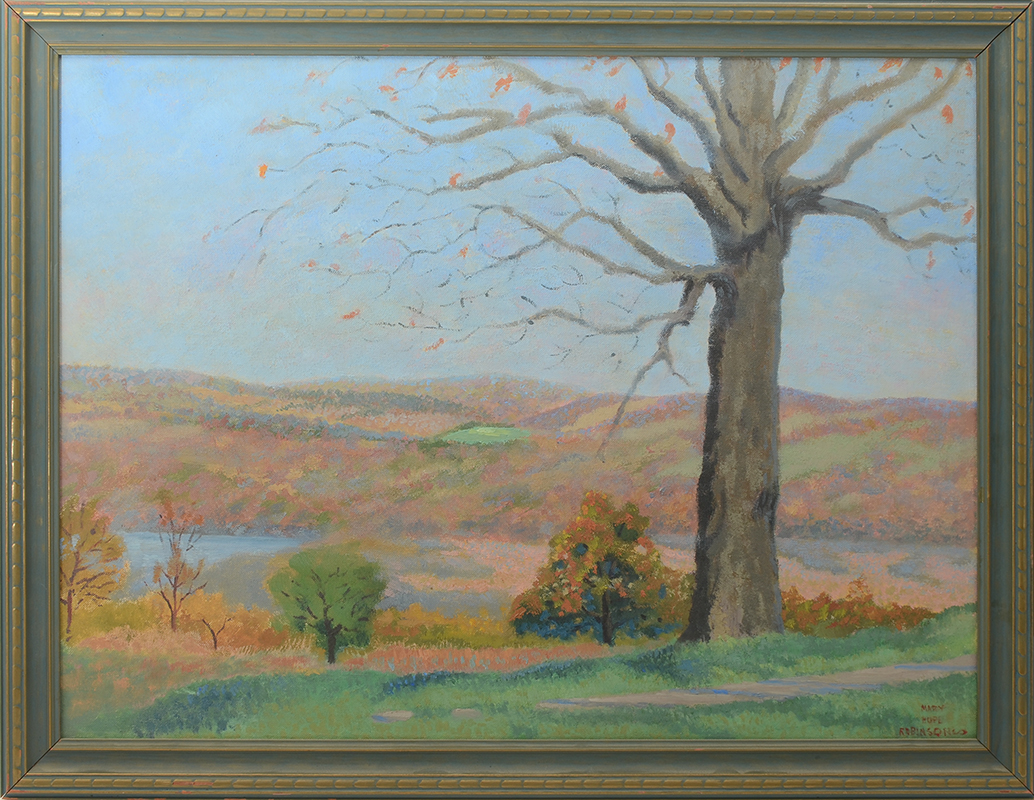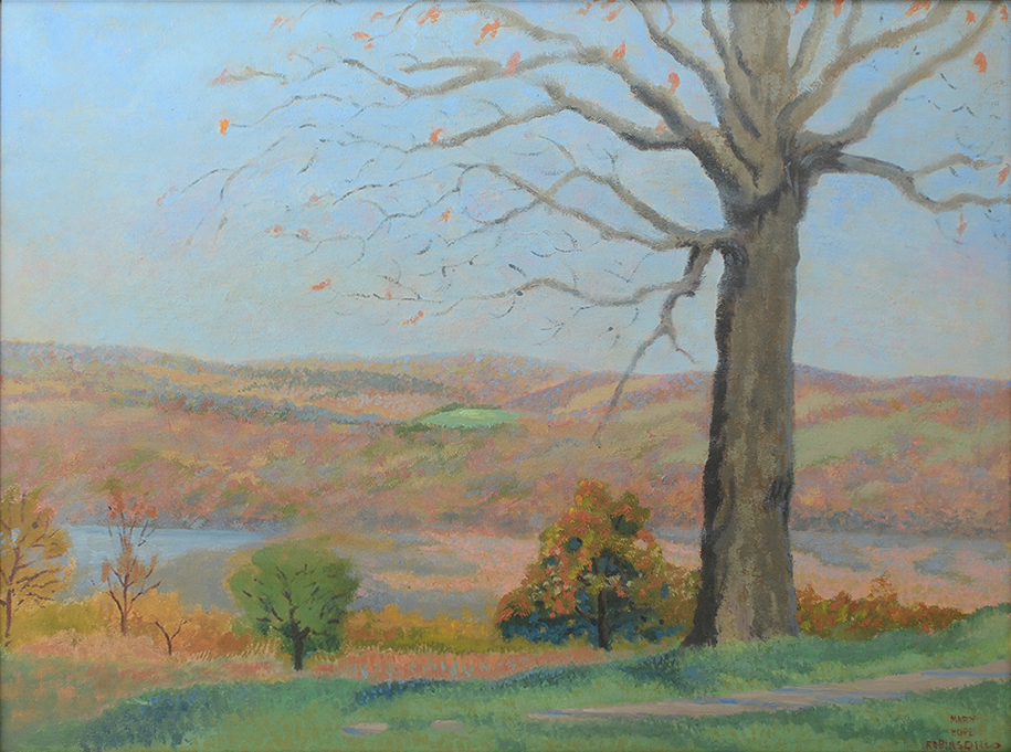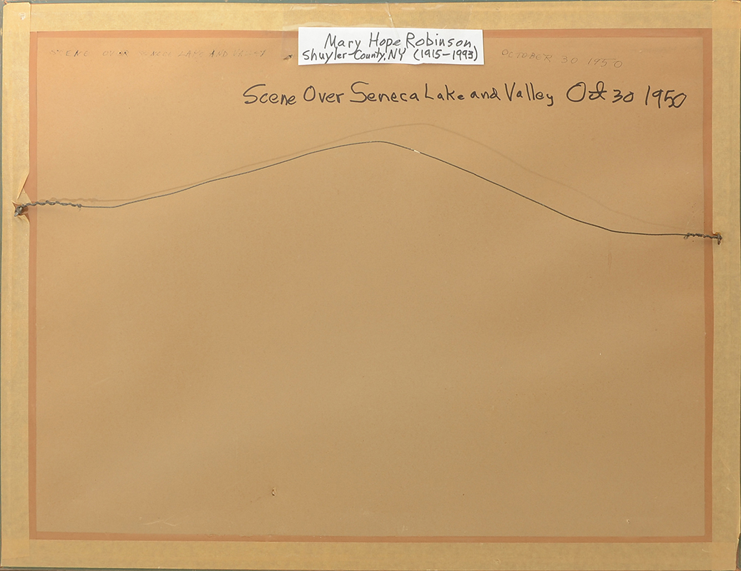 ROBINSON, Mary (American, 1915-1993): ''Scene over Seneca Lake and Valley, October 30, 1950''. Oil/Canvas board, sight size 17.5'' X 23.5'', signed lower right, titled verso, framed, 20.5'' X 26.5''.