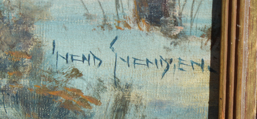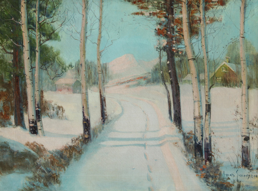 SVENDSEN, Svend Rasmussen, (Norwegian-American, 1864-1945): Winter Landscape with Barn, Oil/Canvas, 18'' x 24'', signed lower right, carved and gilded frame with wear 23'' x 29''.