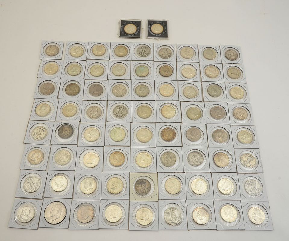 COLLECTION OF US SILVER & CLAD HALF DOLLARS: An assembled collection of coins to 51 include silver half dollars, 15 1965-1970 clad half dollars. Ungraded.