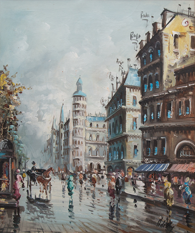 DE VITY, Antonio (Italian, 1901-1993): Parisian Street Scene, Oil/Canvas, 24'' x 20'', signed lower right, period frame, 34'' x 30.25''. Antonio De Vity was widely known for his impressionist paintings of the Paris and Venice streets.