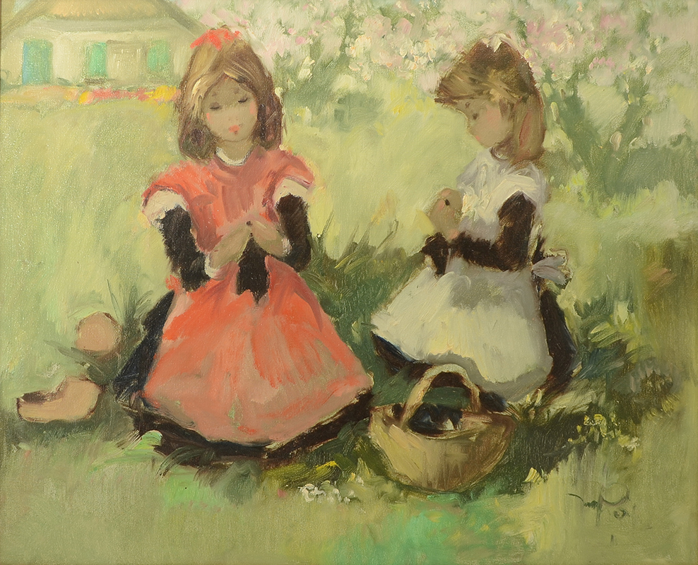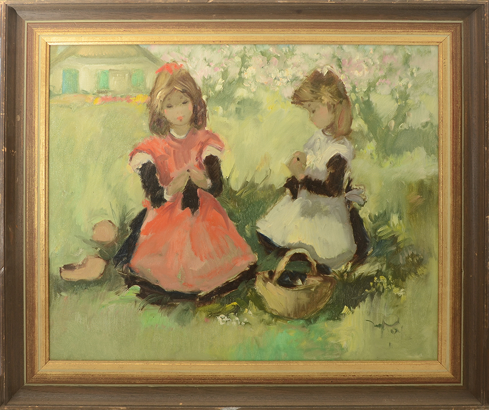 LEWIS VAN DER POL? DUTCH GIRLS AT PLAY PAINTING: Oil/Canvas, 19.75'' x 23.5'', signed lower right, framed, 24.5'' X 28.5''.