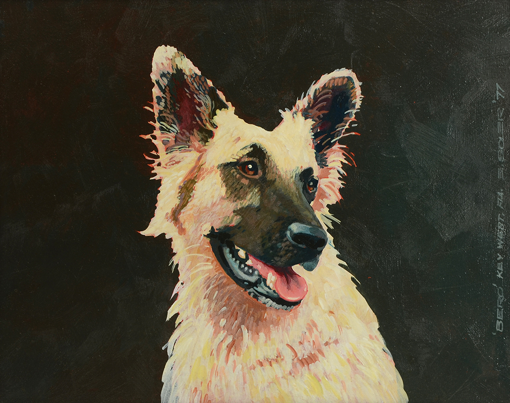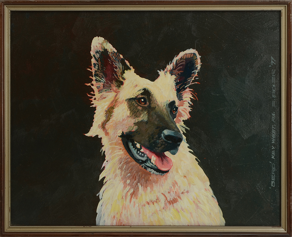 GERMAN SHEPARD PORTRAIT PAINTING BY SOLER: Oil/Canvas, 16'' x 20'' titled ''Bero'' Key West Florida, signed E. Soler and dated '77, framed, 17'' x 21''.