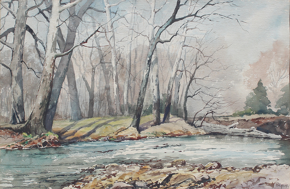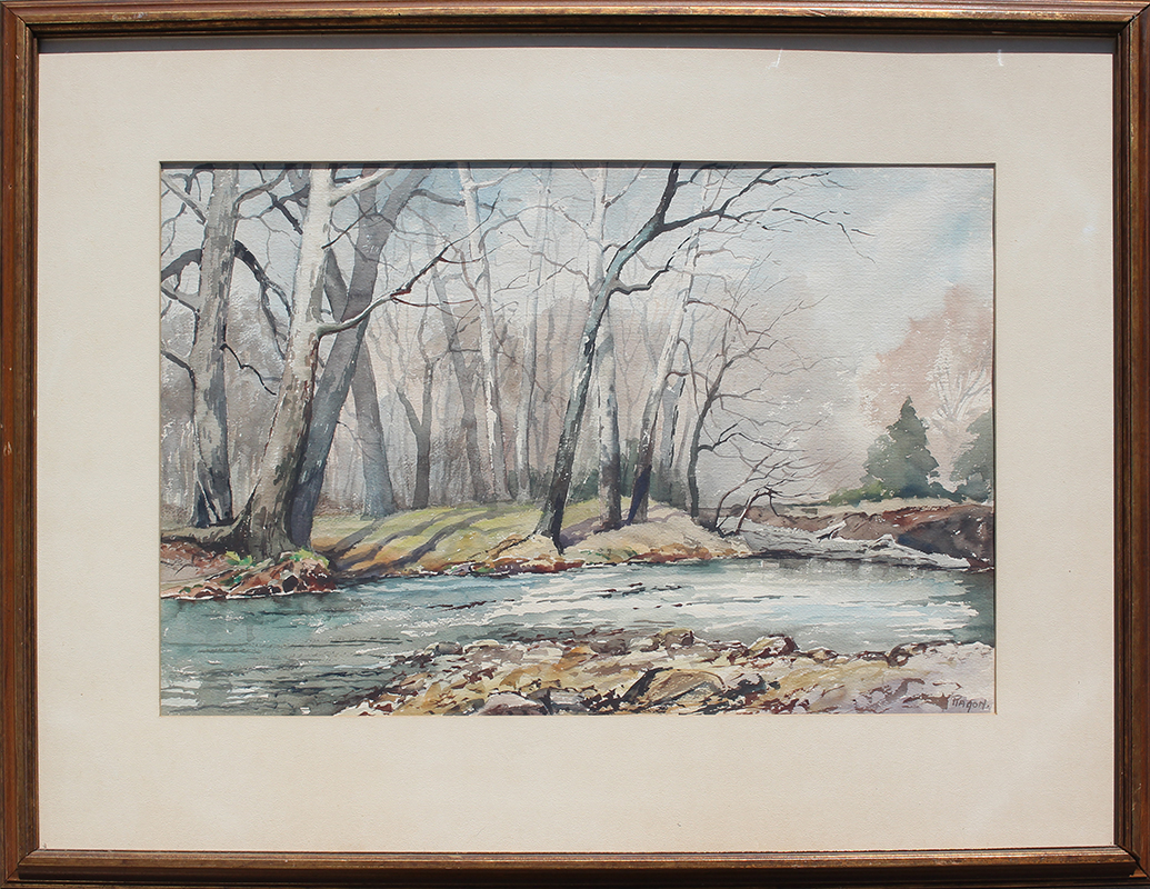MCCONNELL RAGON, Imogene, (American, 1887-1980), ''Autumn Stream'' Watercolor, 17.25'' x 25.5'', signed lower right, framed, 28'' x 36.5''. Ragon studied with Gruppe and Brackman and painted mostly Plein Aire pictures in and around Arkansas, specifically the Ozark Mountains.