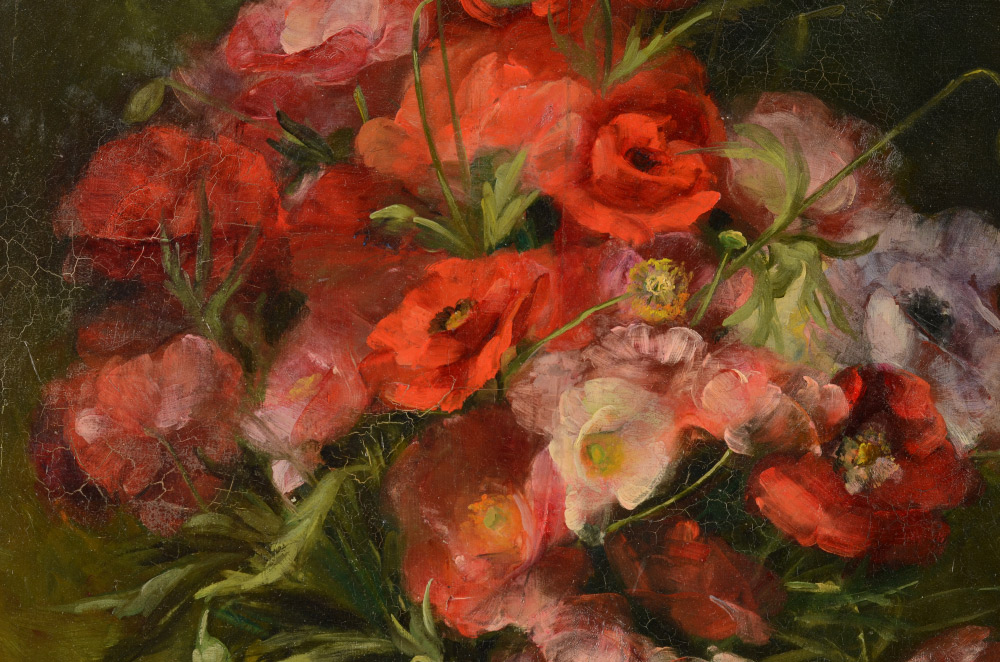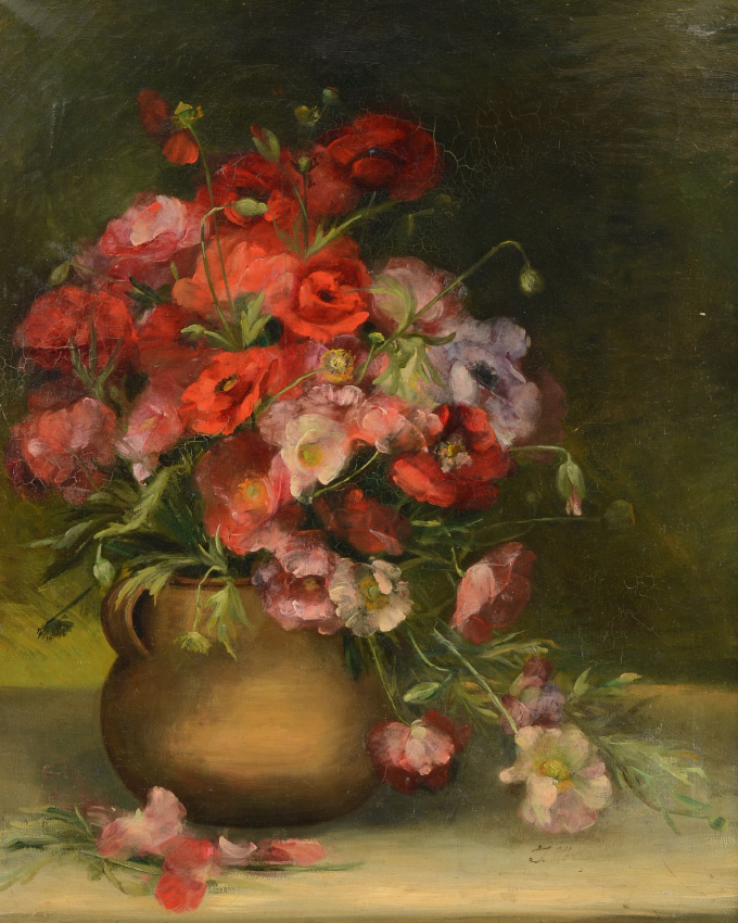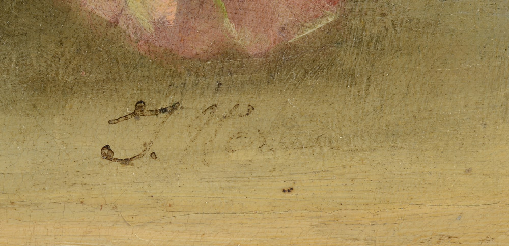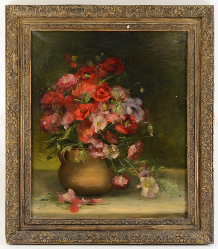GOOD ILLEGIBLY SIGNED STILL LIFE PAINTING OF ROSES: Oil/Canvas, 26'' x 21.5'', signed lower right, framed, 32'' x 27.5''.