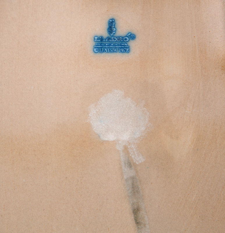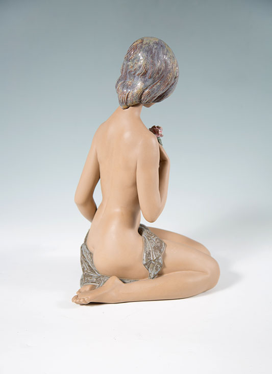 LLADRO GRES NUDE WITH ROSE: Designed by Salvador Debon, retired 1985, gres matte finish figure of a semi nude girl holding a rose. Overall 18 1/2'' x. 11 /2'' x 12 1/2''.