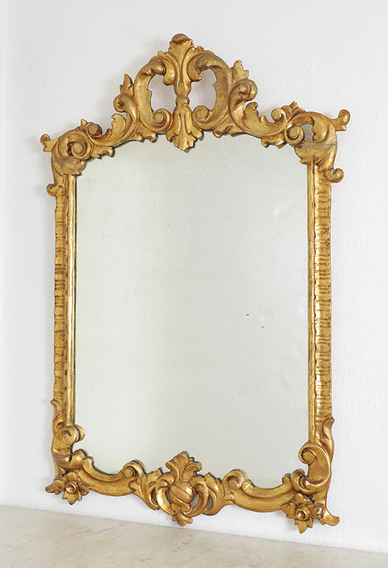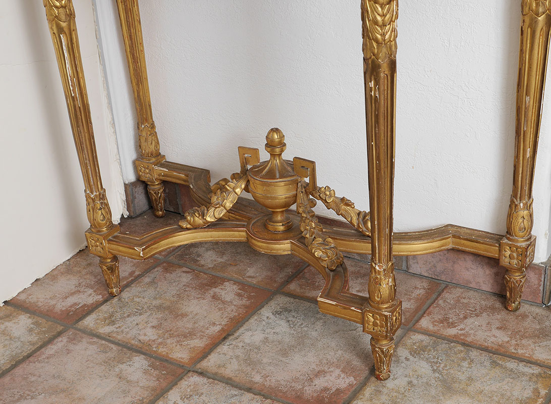 CONDITION: Minor loss and wear to gilt, spotting to mirror, repair to corner of marble.