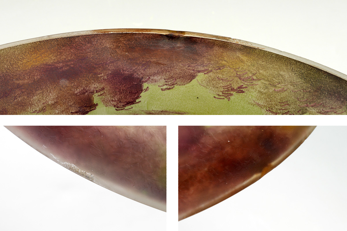 CONDITION: A couple of fleabite chips to lower rim, uneven finish to base.