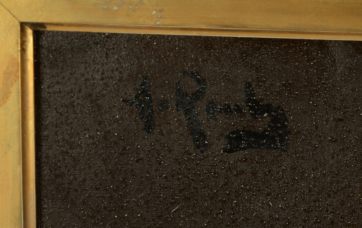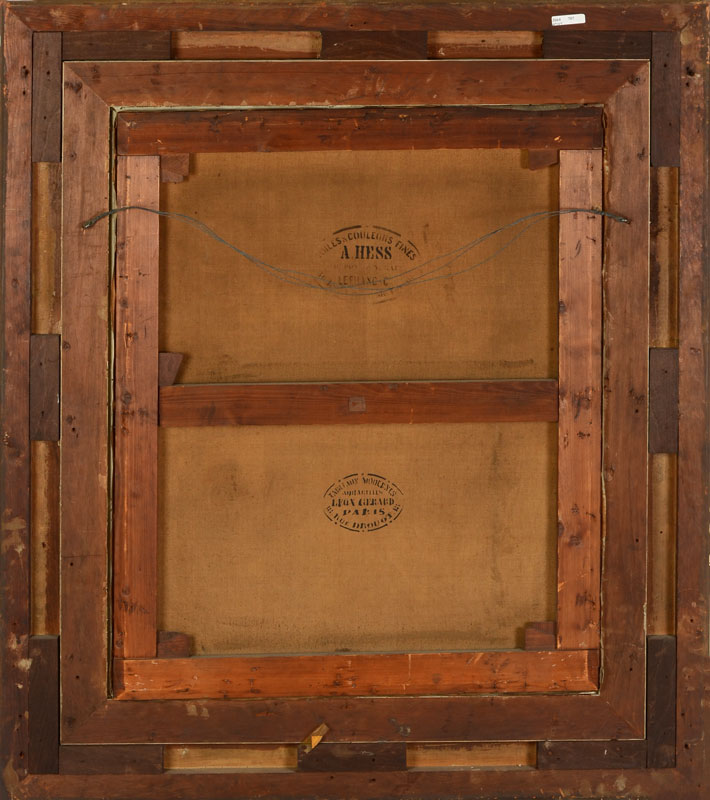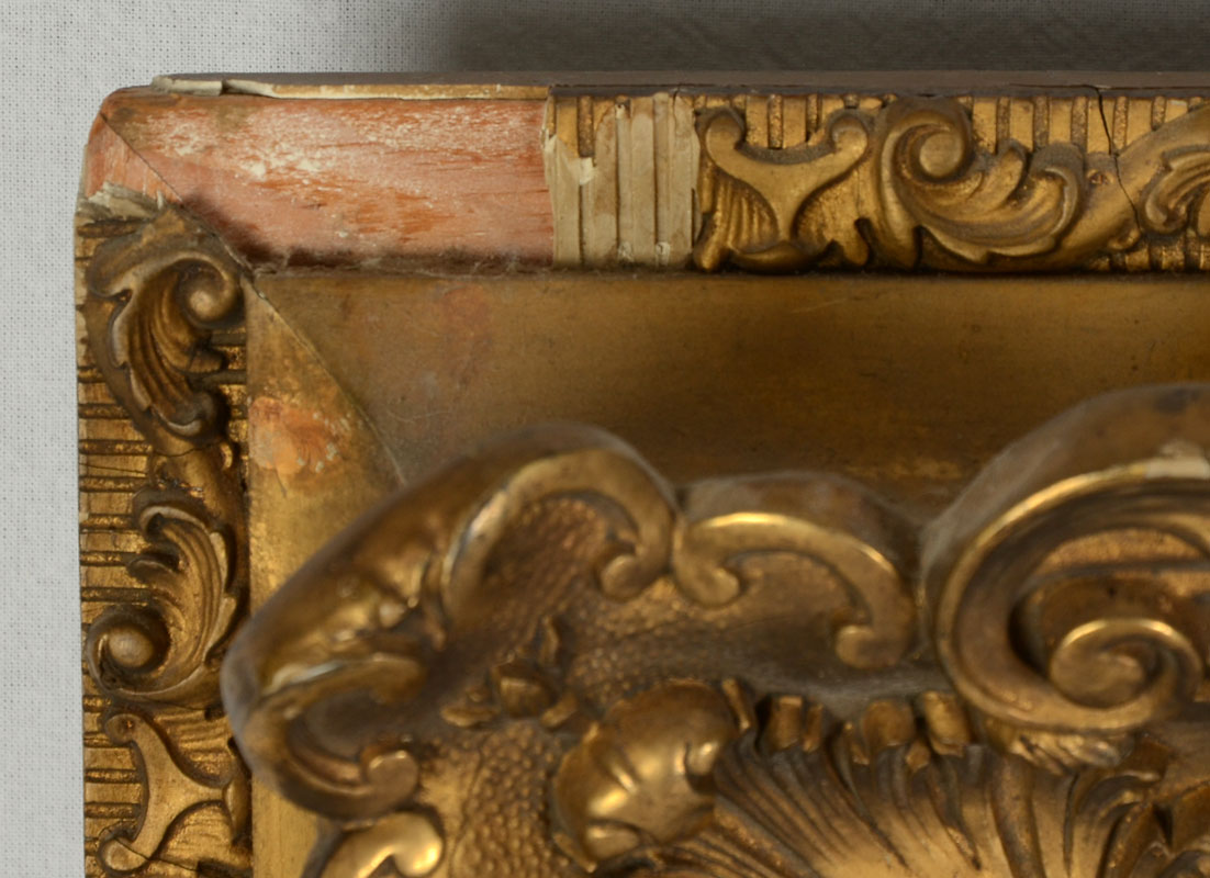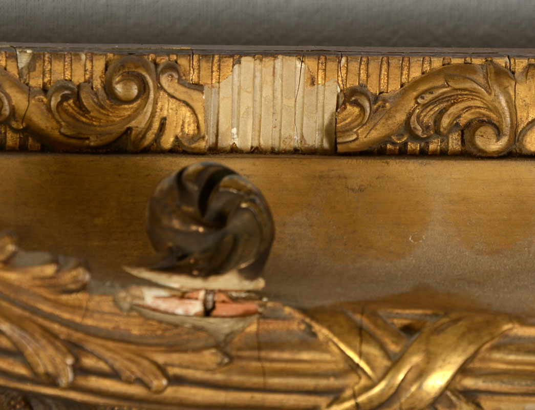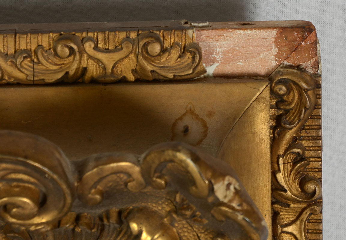 CONDITION: Fleck in lower margin, varnish has dimple, needs cleaning, scattered craquelure, frame shows minor wear and sole loss of gesso, sold as is.