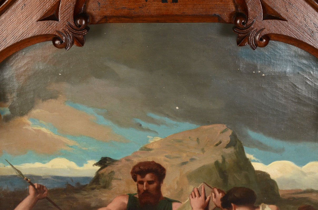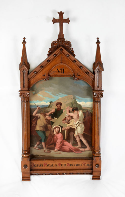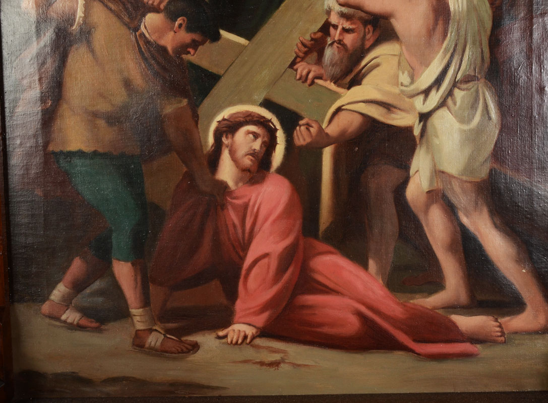 19TH CENTURY JESUS FALLS THE SECOND TIME PAINTING GREAT GOTHIC FRAME: Oil/Canvas, 27.5'' x 20.25'', elaborate frame, 52'' x 25.5''x 4''.