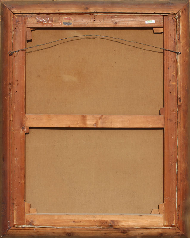 CONDITION: Scattered craquelure, stretcher bar wear, frame shows wear, needs cleaning, sold as is.