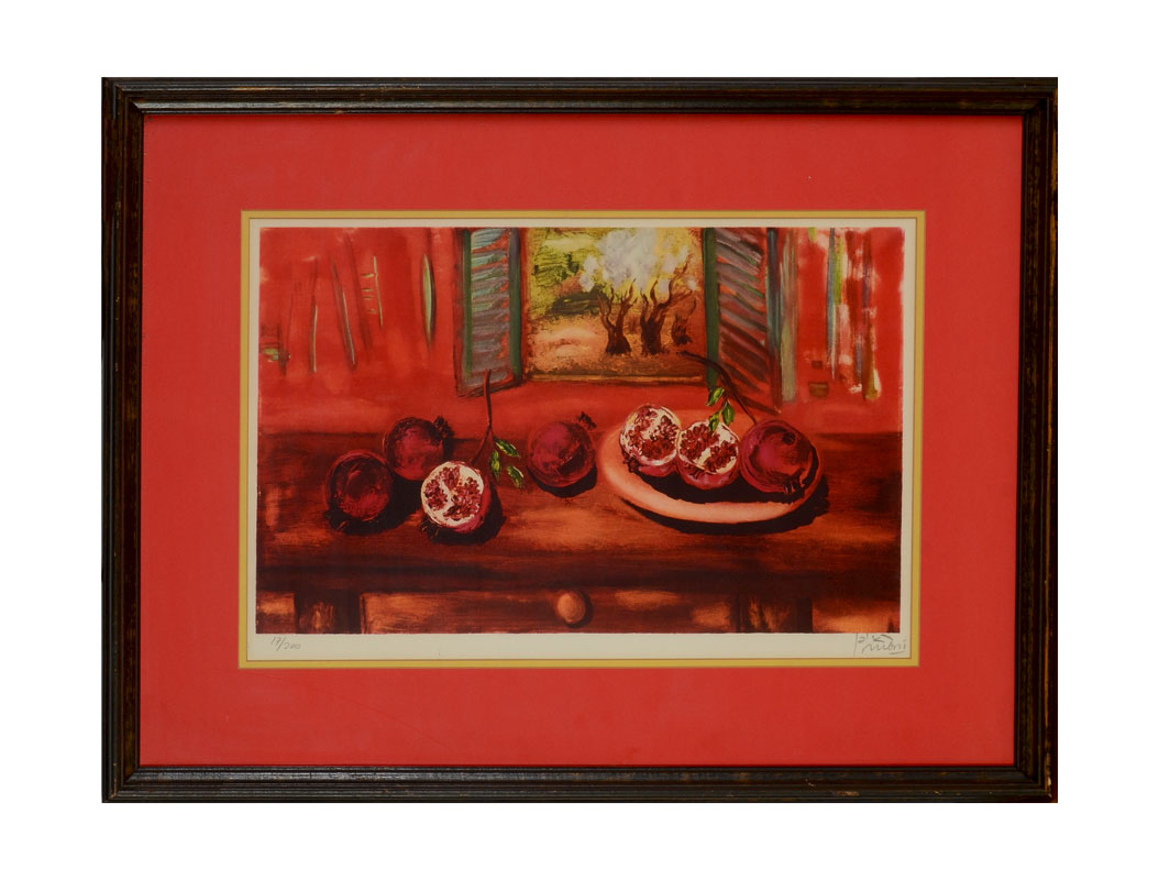 RUBIN, Reuven, (Israeli, 1893-1974): Still Life With Pomegranates, Lithograph, sight size 16'' x 23'', pencil signed lower right, numbered lower left 17/200, framed, 26'' x 33''.