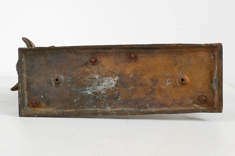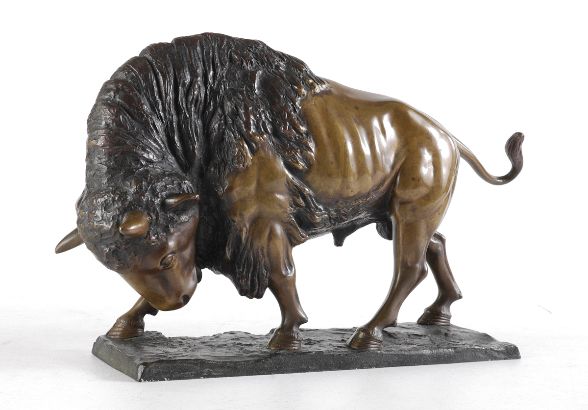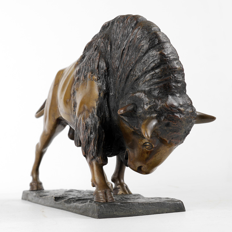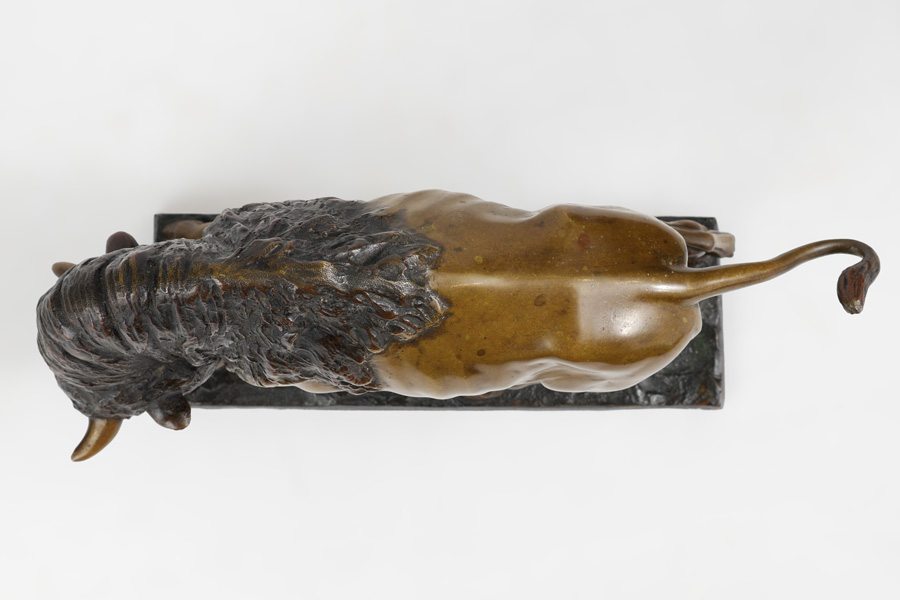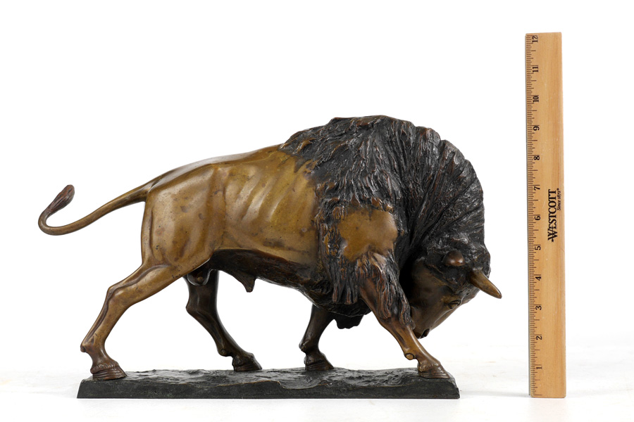 HEAVY BUFFALO BRONZE SIGNED HAASE: 10'' h., 17'' w., probably 1st half 20th C.