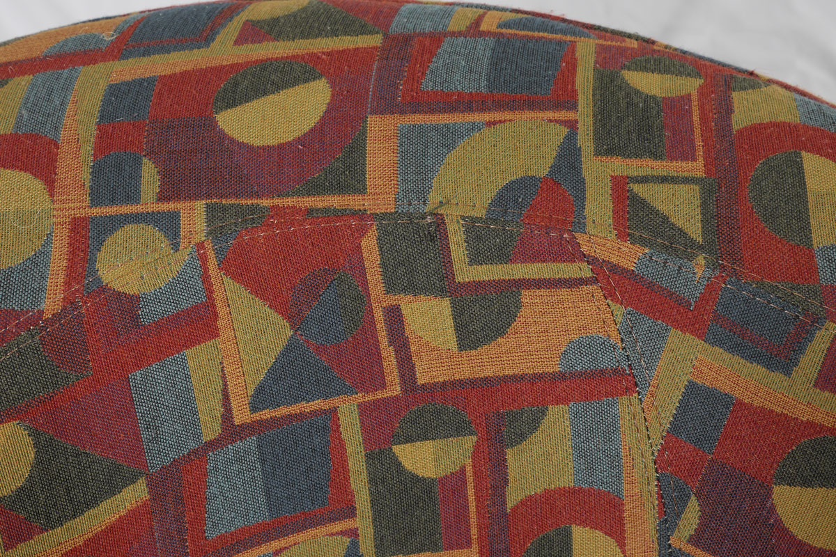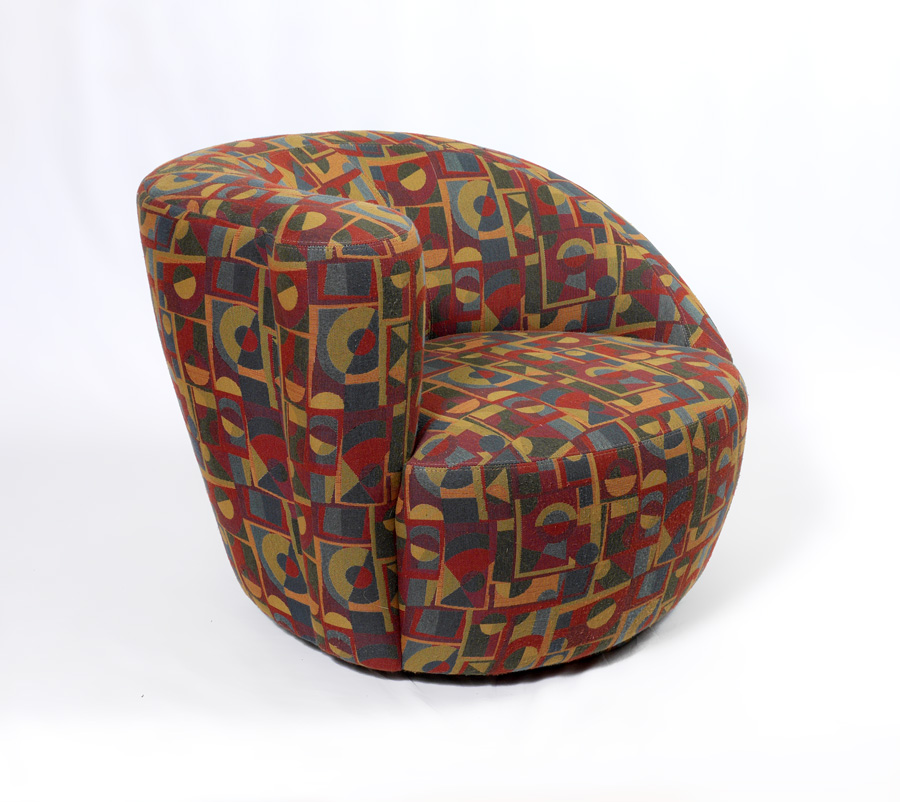 VLADIMIR KAGAN FOR DIRECTIONAL NAUTILUS CHAIR: Swivel chair with patterned cloth upholstery, 28 1/2 h. x 38'' x 25 1/2''.