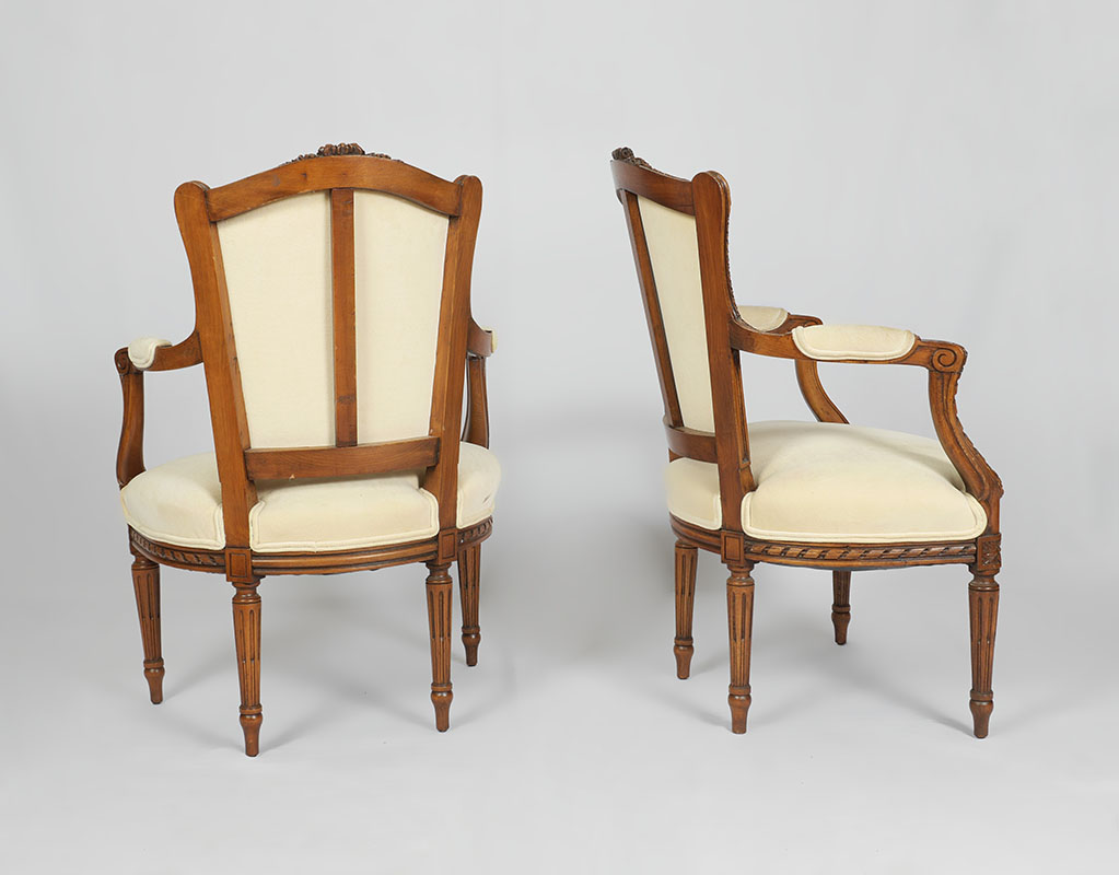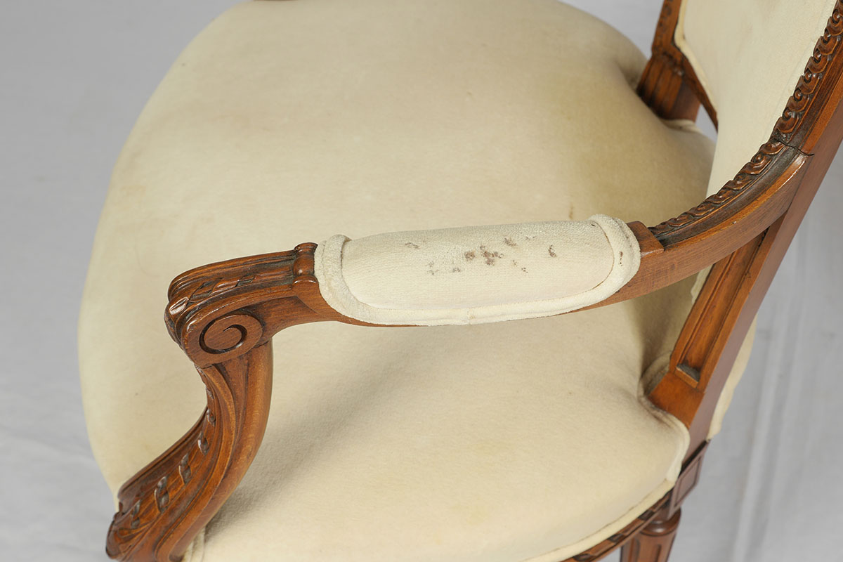 CONDITION: Cigarette burns left arm rest of one chair, other wear consistent with age and use.