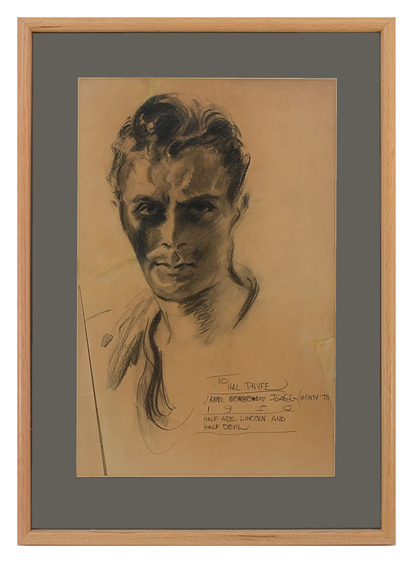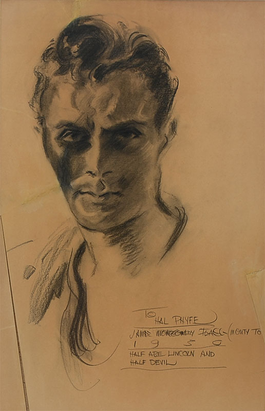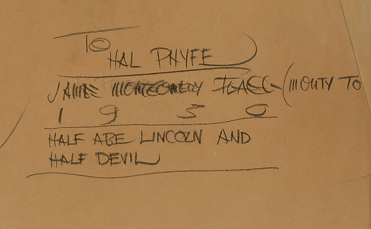 FLAGG, James, (American, 1877-1960): Half Abe Lincoln & Half Devil, Charcoal Drawing, 22 x'' 14'', signed lower right, dedicated to Hal Phyfe, framed, 28.5'' x 20.5''.