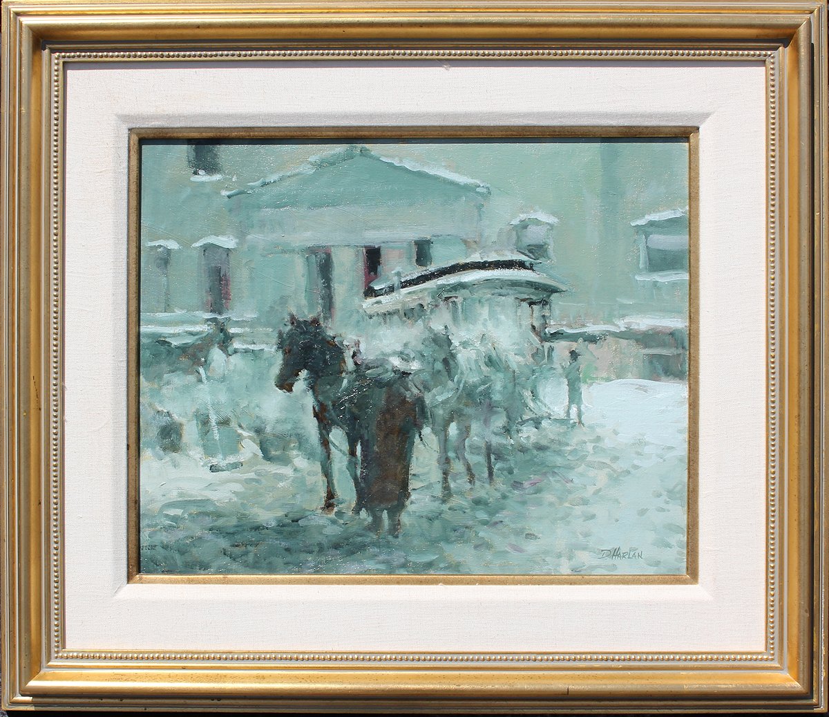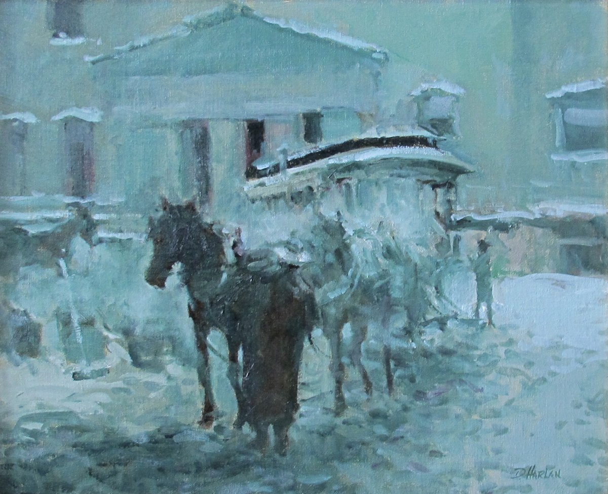 HARLAN, David, (American, 1933-): ''Changing the Team'', Oil/Masonite, 16'' x 20'', signed lower right, framed, 26'' x 29.5'', label with tile verso.
