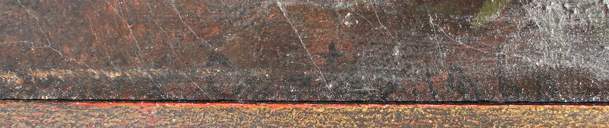 CONDITION: Scattered craquelure throughout, several scattered touch ups of end paint mostly on lower margin edge.