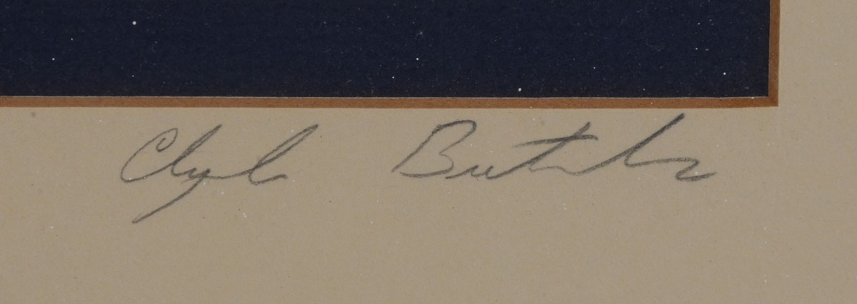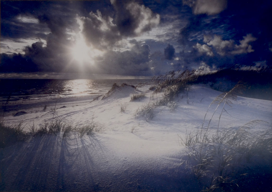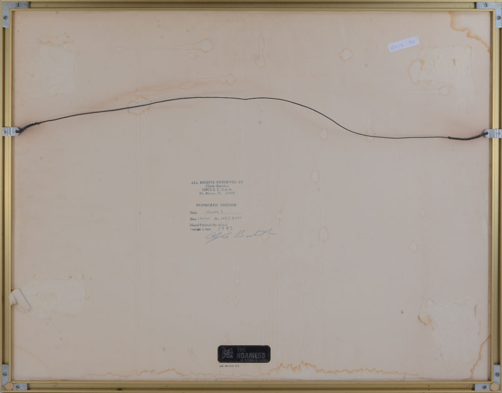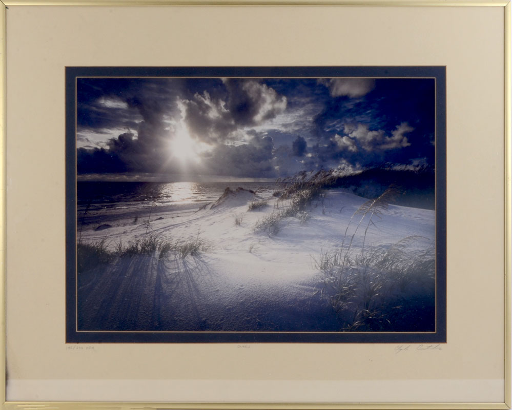 BUTCHER, Clyde, (American, 20th C.): ''Dunes'', Color Photograph, sight size 14'' x 20'', pencil signed on the mat, titled and numbered lower left 142/250 HPA, framed, 22'' x 28.5'', artist's stamp verso, with signature and dated 1983.