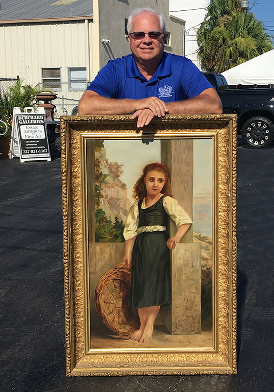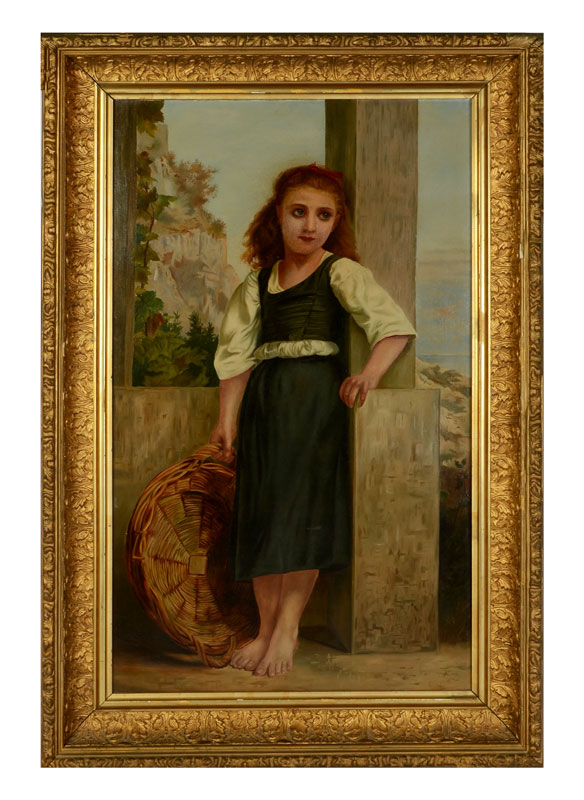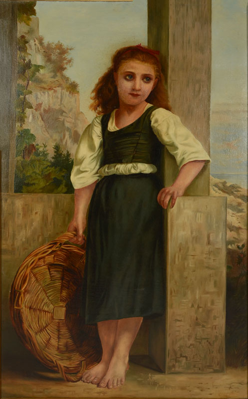 LARGE PAINTING YOUNG ITALIAN GIRL WITH BASKET: Oil/Canvas, 40'' x 24'', gilded gesso frame, 49'' x 32''.
