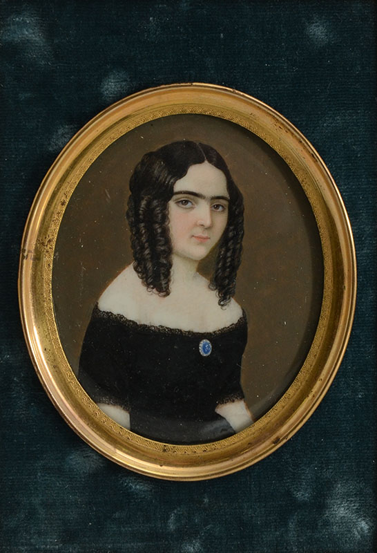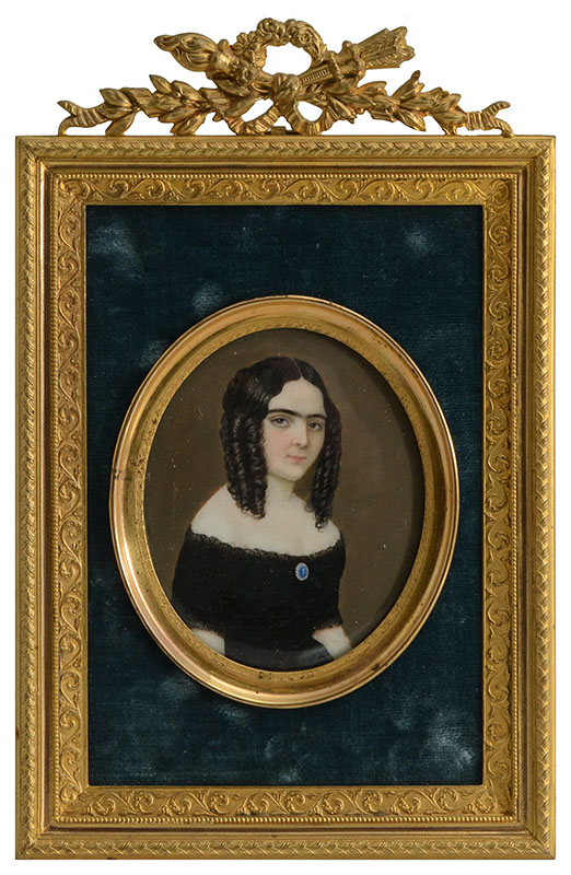 FINE 19th C. MINIATURE PORTRAIT OF A YOUNG GIRL: 3.25'' x 2.5'', no visible signature, gilt metal frame, 8'' x 5''.