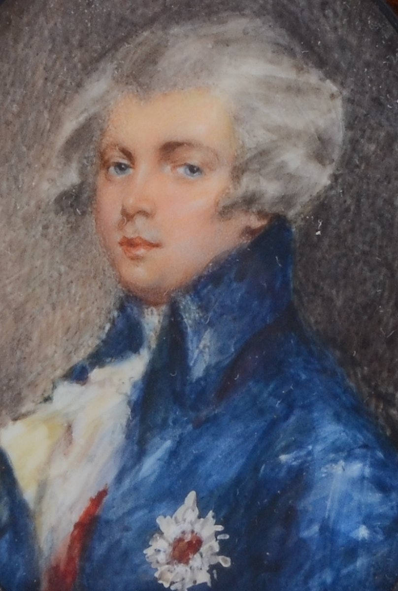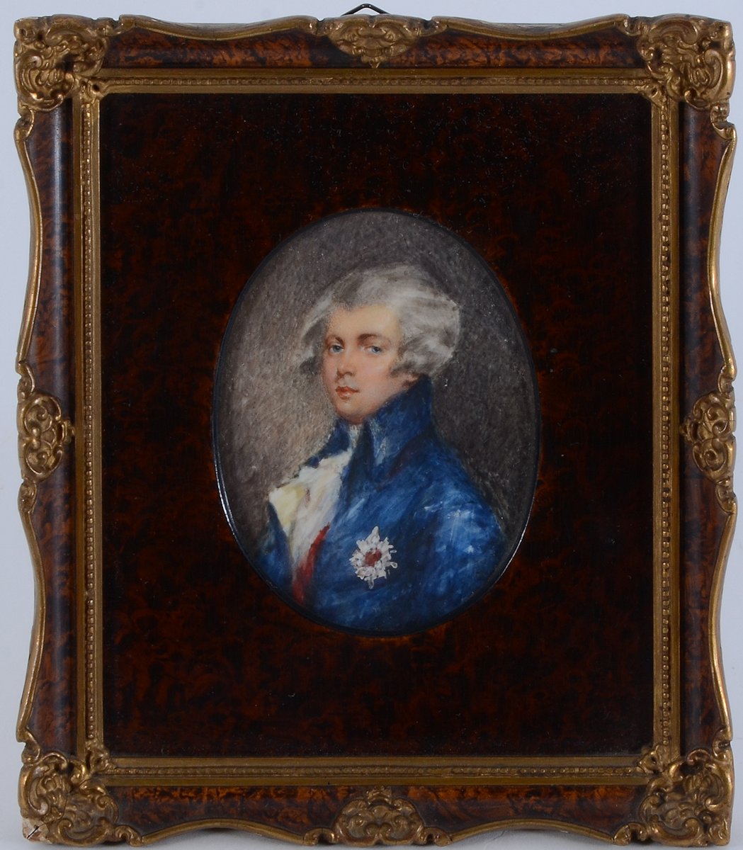MINIATURE PORTRAIT PAINTING OF A GENTLEMAN: Oval sight size 3.5'' x 2.75'', faux tortoise shell framed, 7'' x 6''.