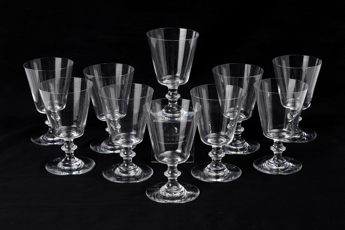BACCARAT EMBASSY CRYSTAL STEMWARE: Set of 10 wine glasses (6''h.) in the Embassy pattern by Baccarat.