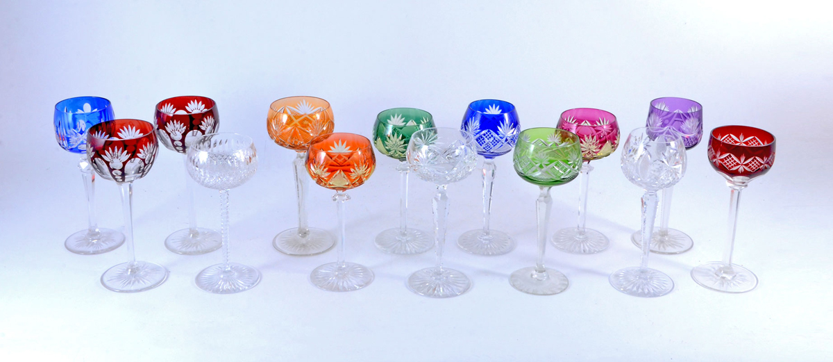 COLLECTION OF CUT TO CLEAR STEMWARE: An assembled collection of 15 pieces total, 12 assorted cut to clear wine stems and 3 clear cut glass stems. Tallest measures 7 3/4'' h.