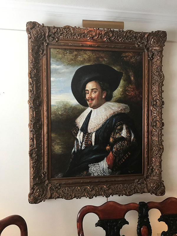 LARGE CONTEMPORARY CAVALIER OIL/CANVAS HEAVY ORNATE FRAME: 48'' x 36'', framed, 62.5'' x 51''.