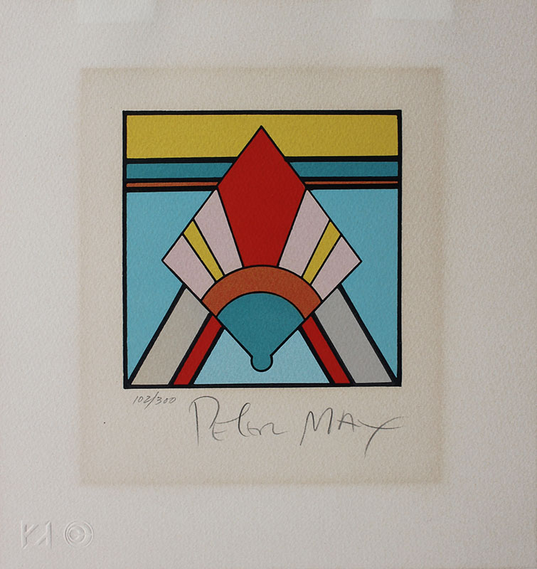 MAX, Peter, (American, 1937-): Geometric #2, 1976, Lithograph, 10.75'' x 10'', Pencil signed, numbered 102/300, framed, 15'' x 14'', 2 blindstamps lower left under the mat.