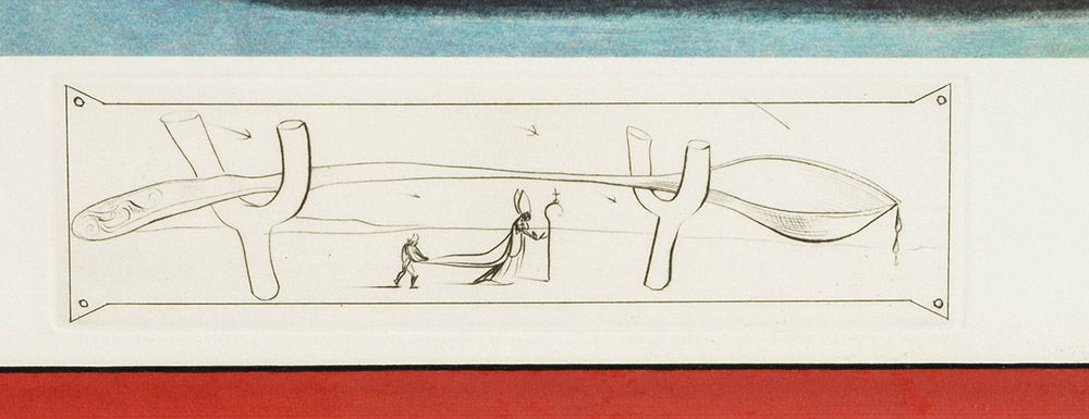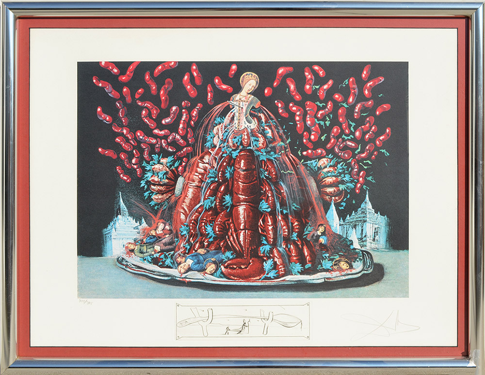SALVADOR DALI FROM LES DINERS DE GALA: ''Les Canibalisms de L'Automne'', Photolithograph with ''Spoon in Crutches'' Engraving, pencil signed lower right, numbered lower left, framed.
