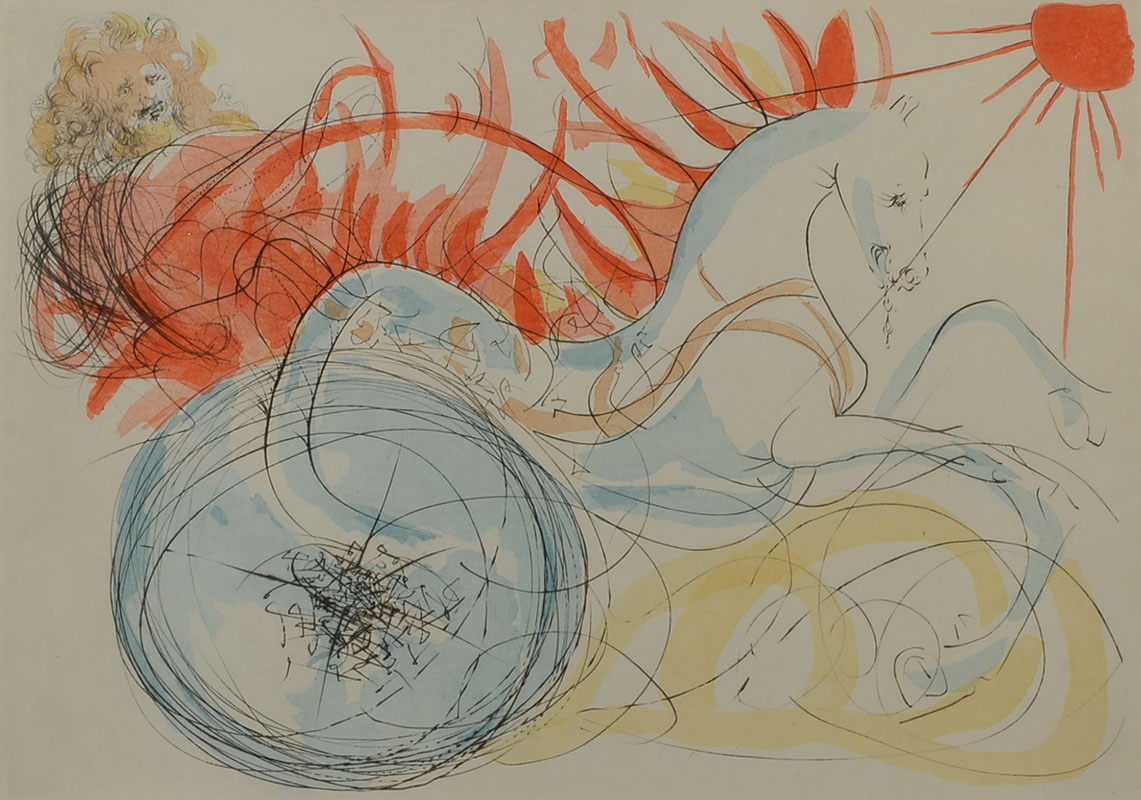 ELIJAH PRINT AFTER DALI: (Fields 75-4J)- engraving with pochoir, 1975, from the suite ''Our Historical Heritage'', sight size 20'' x 26'', pencil signed, framed, 31'' x 37''.