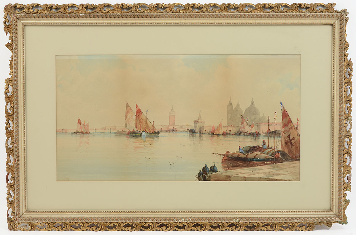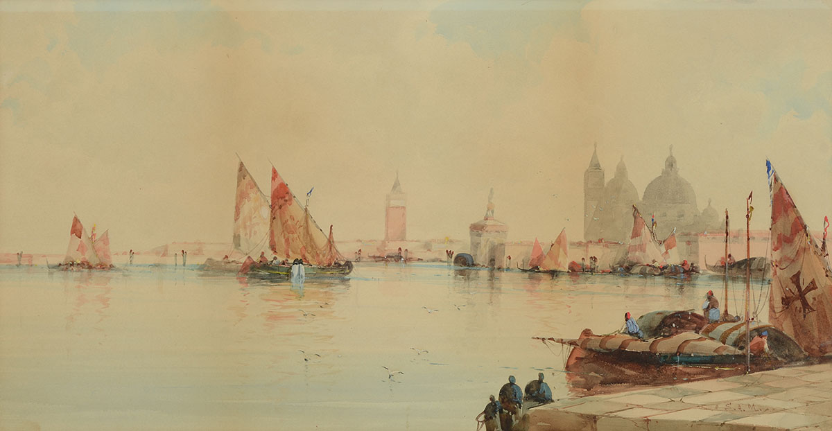 MULHOLLAND, Samuel A., (English, 20th Century): Grand Canal, Venice, Watercolor, 12'' x 23'', monogrammed lower right, framed 21.5'' x 32''.