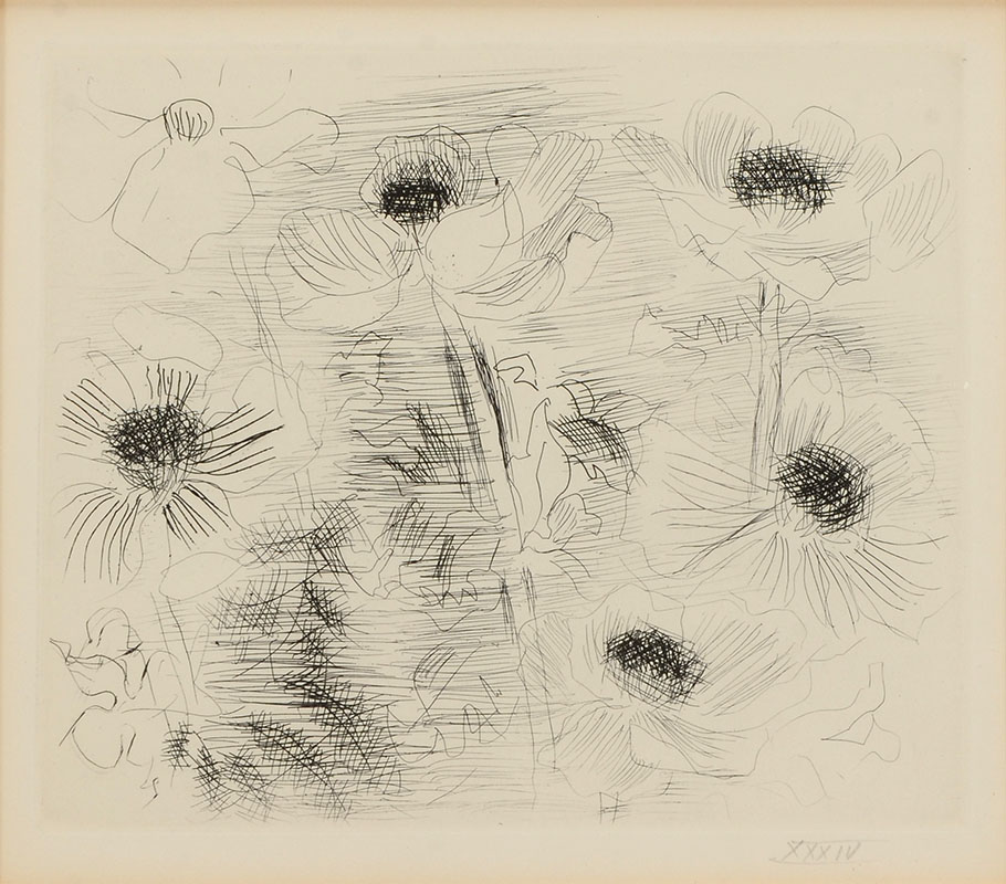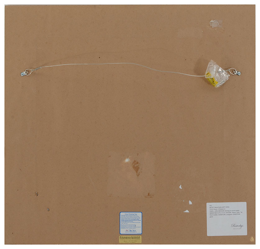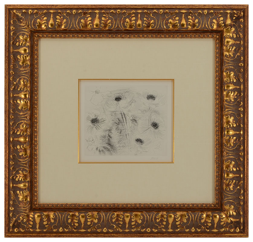 RAOUL DUFY ETCHING, ''FLEURS I'': Etching on Marsh paper, image size 8.75'' x 7.5'', edition Cailler, framed, 24.5'' x 25''.