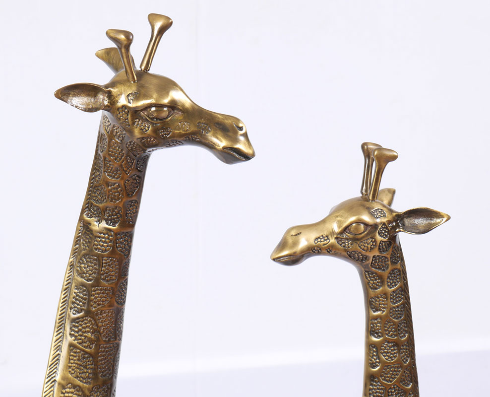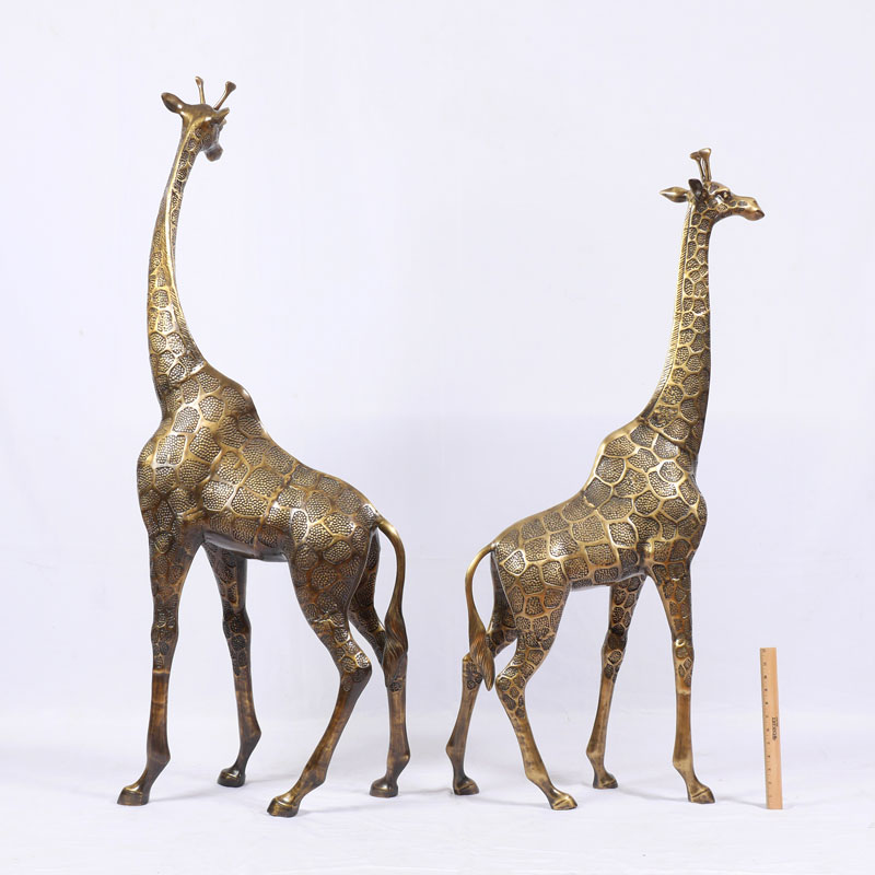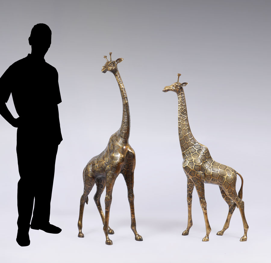 PAIR OF BRASS FIGURAL GIRAFFES: Cast brass, 20th century production, no visible makers mark, tallest measures 56'' h. x 22'' x 10 1/4''.