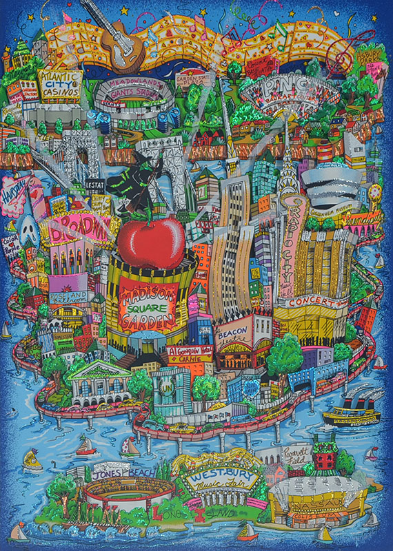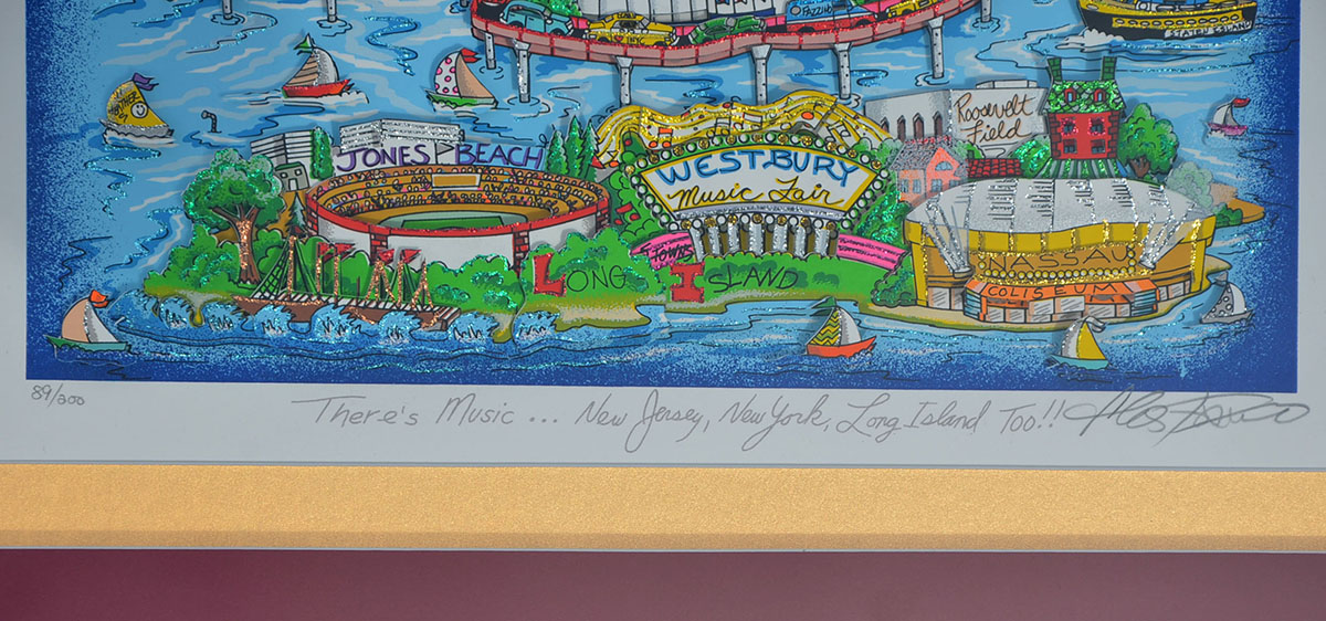 FAZZINO, Charles, (American, 1955-): ''There's Music....New York, New Jersey, Long Island Too!'', 3-d Lithograph, sight size 21.5'' x 16.5'', pencil signed lower right and titled, numbered lower left, 89/200, framed, 32'' x 27''.