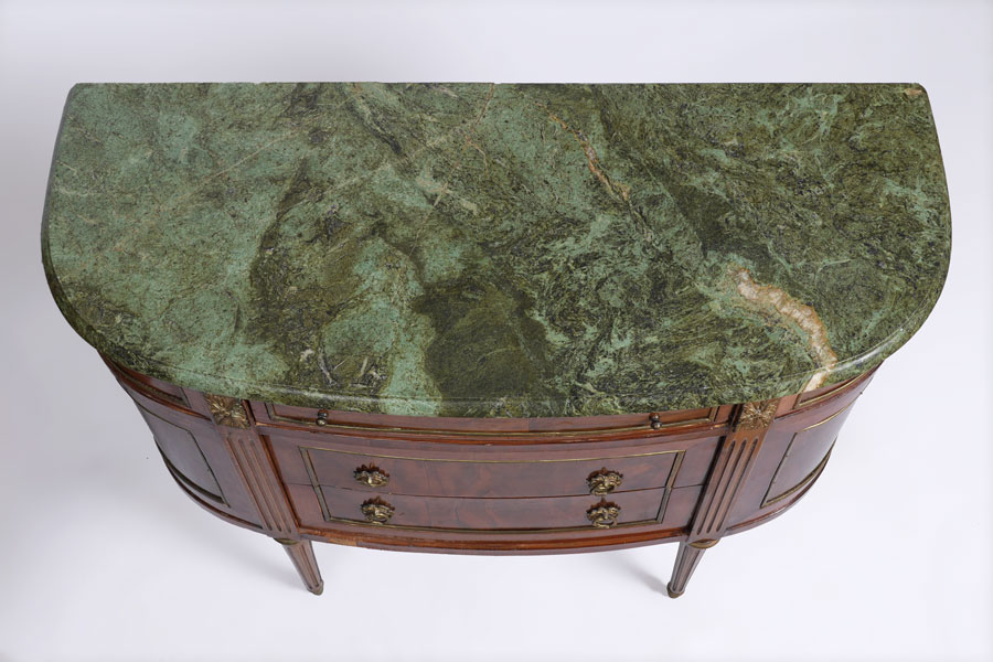 CONDITION: Several spots of veneer loss, repairs to marble.