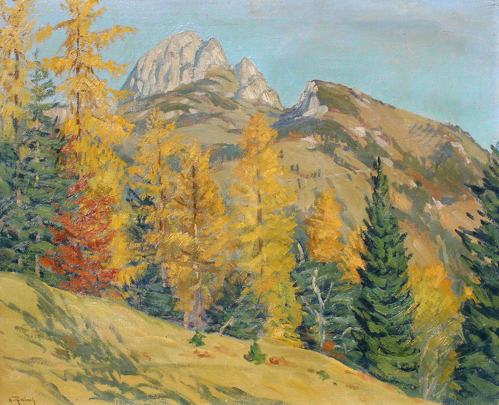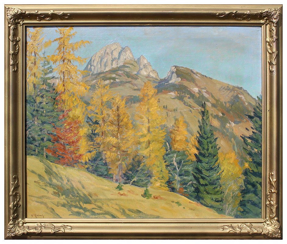 ROSSBACH, Max, (German, 1871-): Summer Mountain Landscape, Oil/Canvas, 24'' x 29.5'', signed lower left, gilded gesso frame, 29'' x 35''.