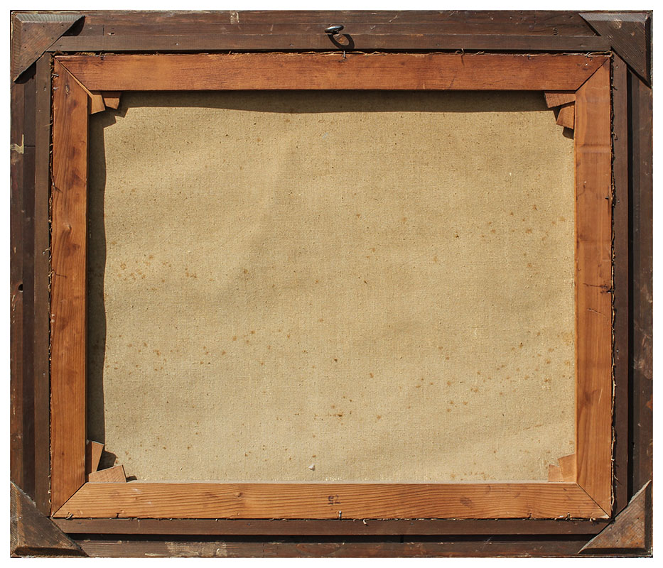 CONDITION: Needs to be restretched, needs cleaning, frame has been over painted, sold as is.