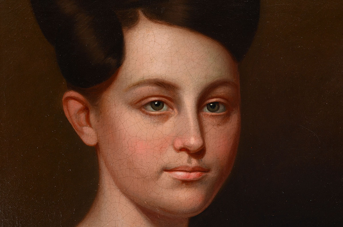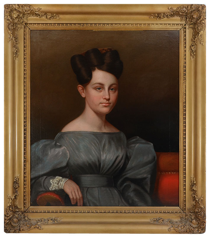GOOD 19TH CENTURY AMERICAN SCHOOL PORTRAIT PAINTING: Caroline Hamilton, born 1812, Oil on Canvas, no visible signature, 30.5'' x 25.75'', framed, 38.5'' x 32.5''.