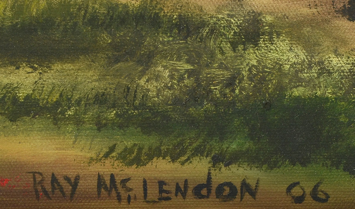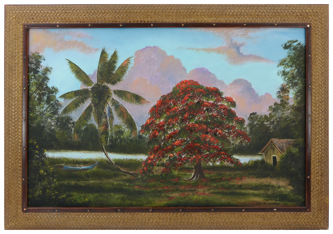 MCLENDON, Ray, (American, 21st Century): 2nd generation Florida Highwaymen Royal Poinciana by river with shack and boat, Oil/Canvas, signed lower right, 24 '' x 36'', framed 30 1/4'' x 42 1/4''.