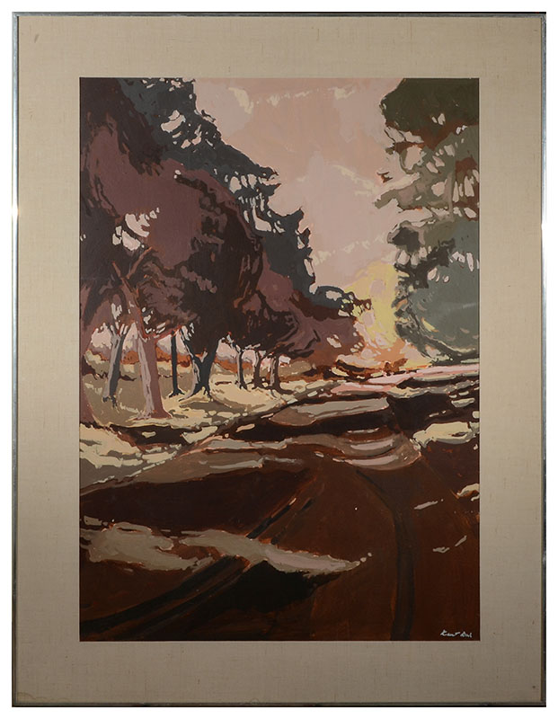 DASH, Robert, (American, 1931-2013): ''Very Long Autumn II'', Acrylic/Paper, image size 40'' x 28'', signed lower right, Fischbach Gallery Label affixed verso,'', plexi and metal frame 49.5'' x 37.25''. Robert Dash is known for his abstract landscape paintings.